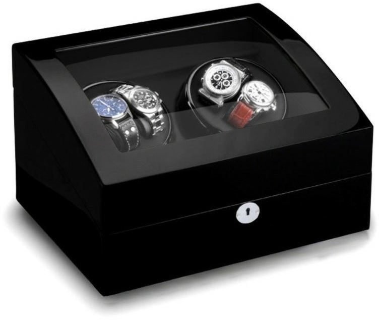 • Funkce a popis:Velmi tichý natahovač na hodinky Revina 2308 BLK (watch winder) značky Ferocase, k natažení až 4 mechanických hodinek a 4-mi přihrádkami na hodinky nebo šperky.