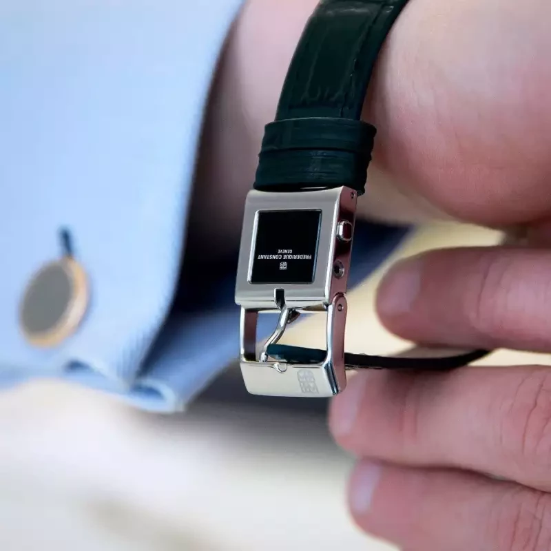Na rozdíl od klasických silikonových fitness náramků má E-Strap speciální horologickou povrchovou úpravu, která zachovává autentický vzhled koženého řemínku na Vašich oblíbených analogových hodinkách. Spona E-Strap je k dostání v nerezové oceli, žlutě pozlacené oceli i růžové oceli. Kromě e-řemínku je součástí balíčku i speciální nástroj, díky kterému si majitel může upevnit přezku na jakýkoliv řemínek v šířce 20mm nebo 22mm.