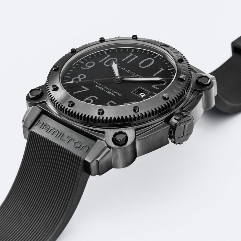 Model H78585333 je voděodolný do 100 bar (1000m) a vybaven héliovým ventilem. Je ideálním pro nejodvážnější dobrodružství v hluboké vodě. Černé pouzdro z nerezové oceli s PVD povlakem o velikosti 46 mm připomíná část ponorky. Tyto hodinky jsou klasika určená pro námořní průkopníky.