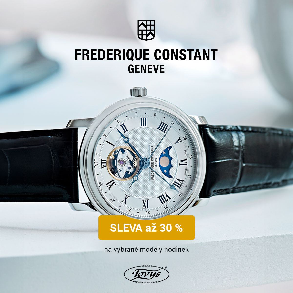 Hodinky Frederique Constant - AKCE!! Hodinky Frederique Constant ztvárňují luxus na světovém poli hodinářského řemesla. Elegance zde jednoznačně vede. Díky tomu patří Frederique Constant k nejspolečenštějším značkám hodinek vůbec. POZOR, nyní na tuto značku máme akci, kdy většina hodinek má 30 % slevu a některé i více!! Prozkoumat to můžete ZDE. Původ této švýcarské značky sahá do roku 1904, kdy pánové Frédérique Schreiner a Constant Stas založili společnost vyrábějící hodinky s názvem spojením jejich jmen. Tato firma dnes sídlí v Plan-les-Ouates, Ženeva. Společnost inovovali potomci zakladatelů v roce 1988 Peter Stas s jeho manželkou Alettou Bax a oba se aktivně podílejí na všech fázích výroby, od počátečního návrhu modelu po konečnou montáž. Svoji první kolekci hodinek předvedli v roce 1992 a skládala se z šesti modelů hodinek. V roce 1994 kázala značka první otevřené srdce v číselníku - pohled na kmitající setvačku, takzvaný tlukot srdce hodinek.V roce 2008 překvapila tato relativně mladá značka na světové výstavě ve švýcarském Baselu strojek osazený tourbillonem. Strojek je vyroben kompletně v domácím prostředí, jedná se o jeden ze strojků vlastní výroby, což zvedá prestiž nejen hodinkám, ale celé značce. Strojek má v sobě několik unikátních funkcí včetně křemíkového krokového kola. Lehkost tohoto kola a snížení tření zvyšuje účinnost kroku. Jinak ve většinu modelů hodinek své produkce osazuje tato značka, stejně jako většina světových značek, strojky Eta nebo Valjoux. Co je dobré zmínit, Frederique Constant má velmi dobré povrchové úpravy na zlacených hodinkách a tak zde máme vynikající kvalitu nejen strojků, ale i pouzder. Frederique Constant investuje i na charitu. V roce 2011 investuje 75.000,- dolarů do mezinárodní dětské Heart Foundation 5. V roce 2011 Frederique Constant vyrobila více než 120.000 hodinek prodaných v 2 700 prodejnách nabízejících značku ve více než 100 zemích. Tato švýcarská značka opravdu umí navrhnout a vyrobit nestárnoucí nadčasový design. Prohlédněte si tuto jedinečnou kolekci na našem webu, nebo pokud máte jakýkoliv dotaz, jsme tu pro vás. Napište nám Jméno: E-mail: Telefon: ODESLAT #frederiqueconstant #hodinky #watches #watchfrederiqueconstant #tovys #eshop #jihlava #prague