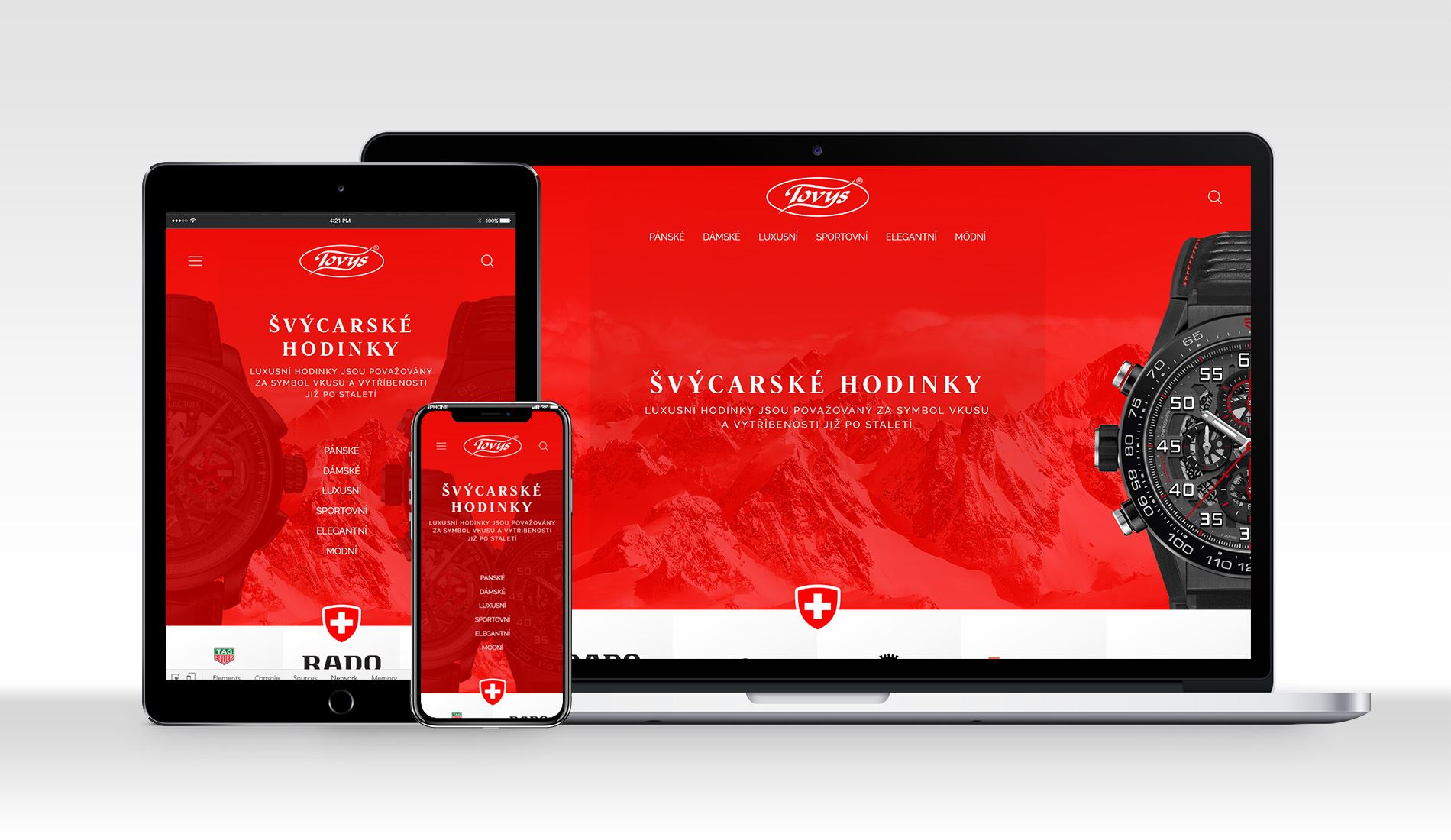Luxusní hodinky jsou považovány za symbol vkusu a vytříbenosti již po staletí. Na tomto eshopu můžete vybírat z více jak 20 skvělých švýcarských značek. Web je opět přímo napojen na náš hlavní eshop www.tovys.cz. Díky tomu Vám neutečou žádné novinky a můžete v pohodlí domova vybírat na webu zaměřeném pouze na tento druh hodinek.