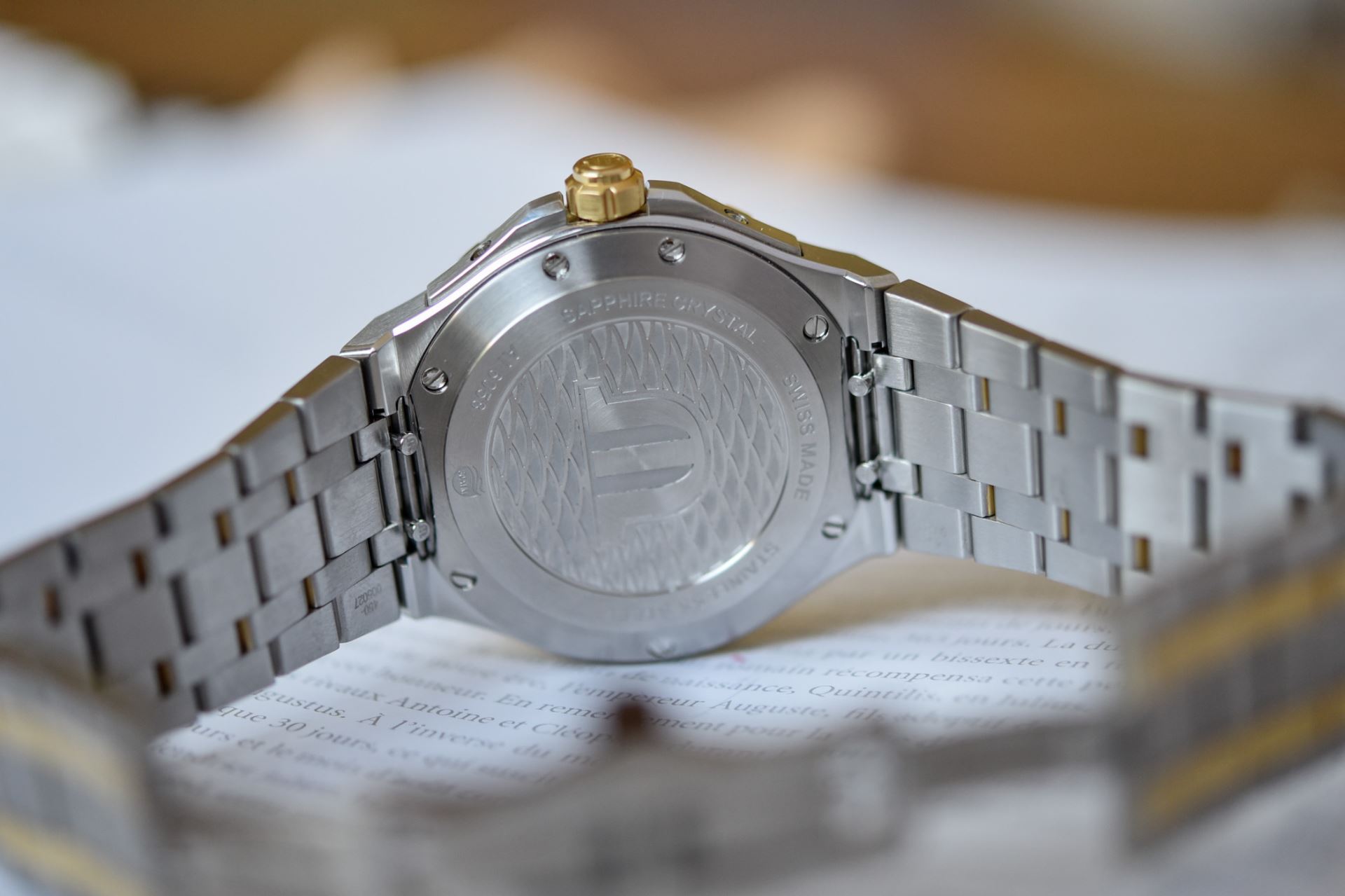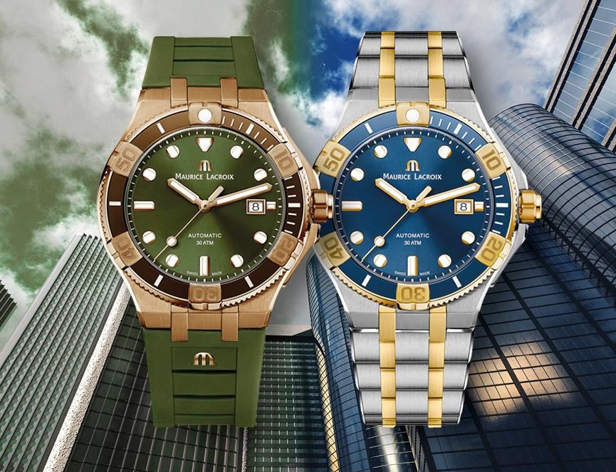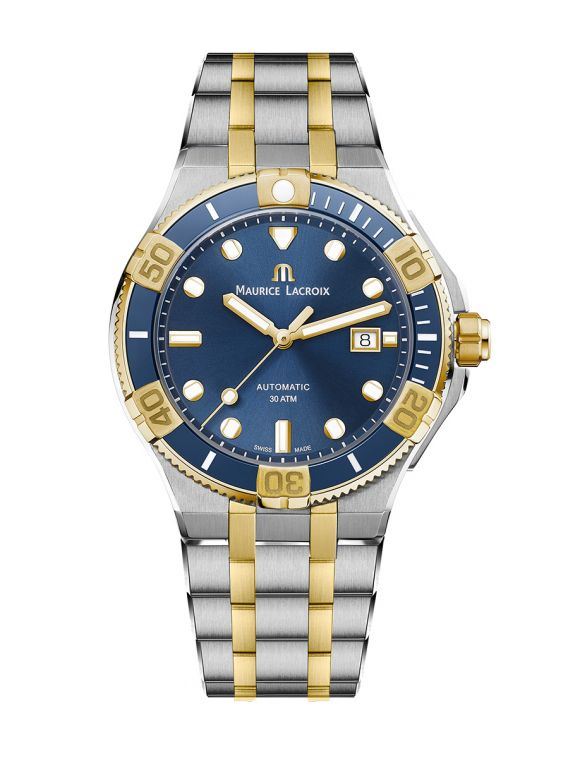 U modelu Aikon Venturer 43 mm AI6058-SY013-430, který obsahuje ocel a zlato, jsou další novinky, ocelové komponenty pozlacené žlutým zlatem. Malé články náramku, korunky a lunety, stejně jako jeho světlé a jemné dotyky dávají nový život tomu, co bylo dříve jen funkční. Volba žlutého zlata a tmavě modrého číselníku dává tomuto modelu vzhled 80. let a obohacuje tak zásobu stylu Maurice Lacroix.