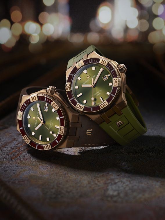 Poprvé má Aikon Venturer také bronz. Pouzdro o průměru 43 mm je vyrobeno ze speciální slitiny, kterou lze opatřit patinou nebo zhnědne bez oxidace. Tmavě zelený číselník a gumový řemínek s drážkami dodávají modelu originální vzhled. Díky systému Easychange lze během okamžiku vyměnit za verzi z hnědé telecí kůže s prošíváním. Tento model AI6058-BRZ01-630 je v limitované edici 500 kusů.