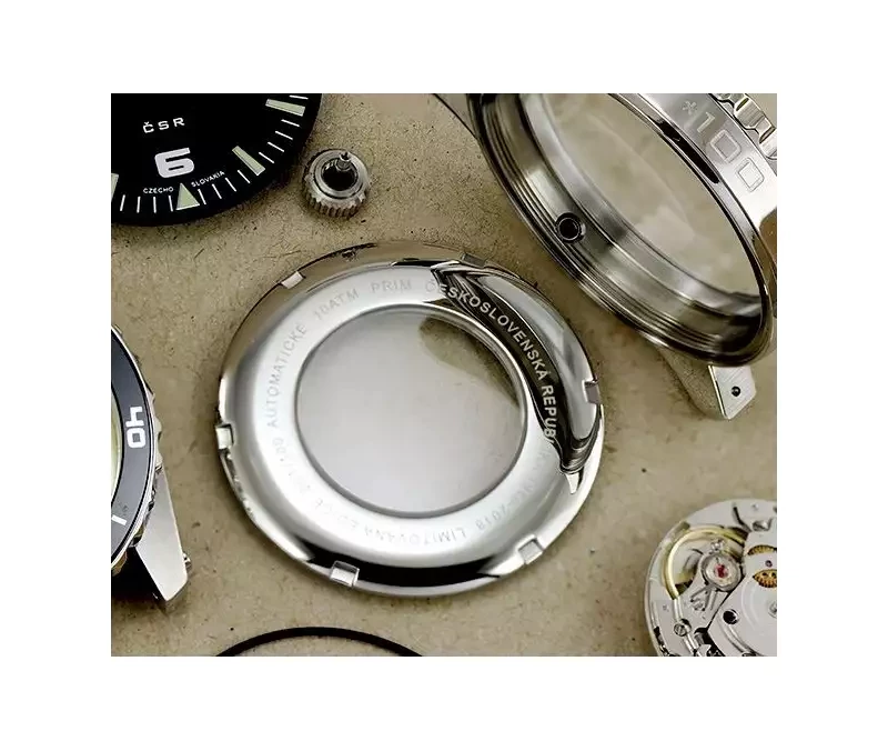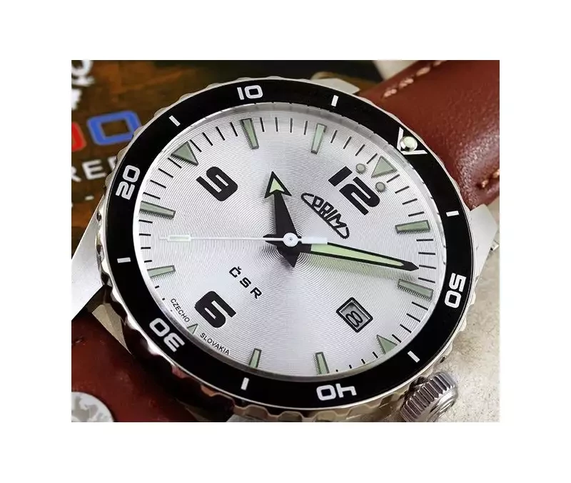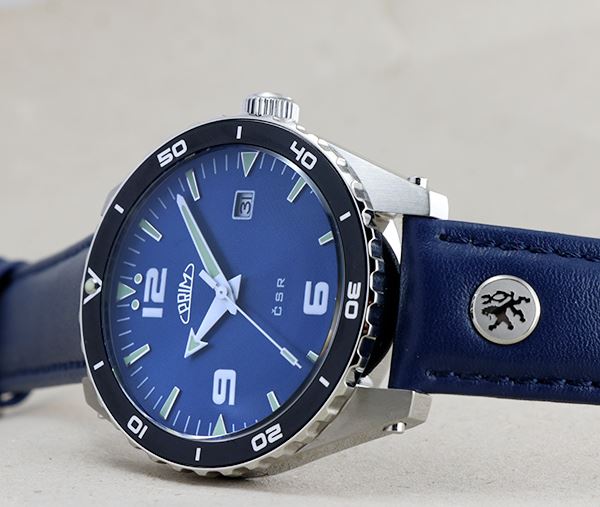 Při pohledu na tyto hodinky se můžete těšit z harmonické souhry barev a tvarů - luneta je černá, minutová stupnice s luminiscenční barvou a číselník ve variaci černé, modré, bílé a populární champagne. Sportovní hodinky PRIM ČSR s ukazatelem data jsou osazeny kalibrem Premium Slim Automatic Miyota 9015. Pouzdro je vyrobené z ušlechtilé nerezové oceli 316L, dále upravené kartáčováním a leštěním.