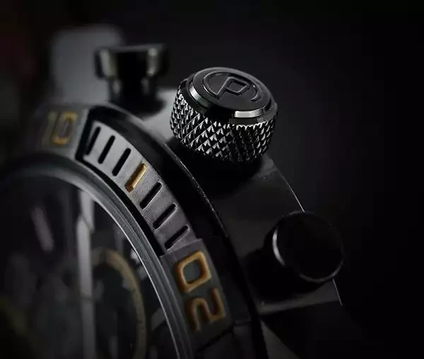 Multifunkční hodinky s chronografem jsou vyrobené z broušené ušlechtilé oceli 316L a následně upravené metodou IPB v nové matné šedé barvě. Do pouzdra je vsazen švýcarský quartzový strojek s chronografem kalibr Ronda 5030 D. Hodinky mají spodní víčko z leštěné ušlechtilé nerezové oceli s originálním erbem a mottem "Dream, Dare, Live It"