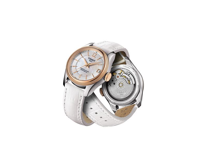Hovoříme o designu, který díky kombinaci vzorované lunety se zlatým PVD pokrytím (je i na korunce nebo na prostředních článcích kovového taku) kontrastuje s leštěnými nebo matovanými povrchy ocelového pouzdra. Hodinky jsou krásně čitelné, elegantní, s datumem ve zlaceném rámečku. Pro milovnice kožených řemínku máme samozřejmě i tuto variantu, s modelovým číslem T108.208.26.117.00