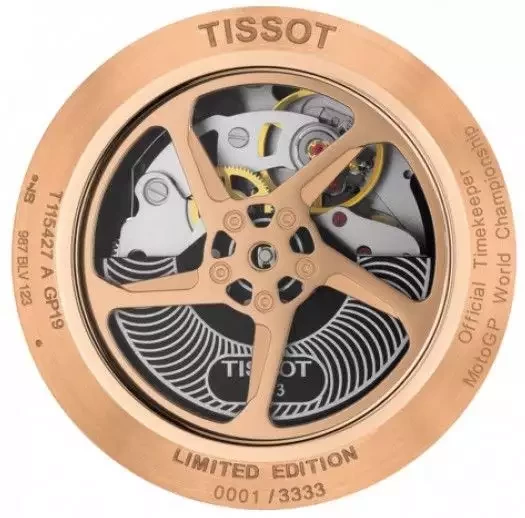 Tato limitovaná edice hodinek značky Tissot s automatickým pohybem je nutností pro každého fanouška MotoGP. Model spadající do řady T-Sport T115.427.37.051.00 má silnou povahu a mnoho detailů inspirovaných závodem na motorce, jelikož značka Tissot je oficiální časoměřič soutěže MotoGP od roku 1999.