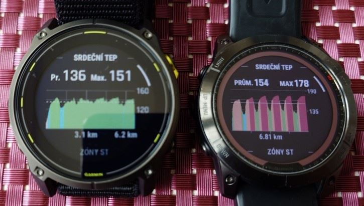 Enduro trojky mají také nový snímač tepu, páté generace, s označením Elevate5. Ve standardním módu používá dvě prosvětlovací diody, v aktivitě čtyři. I když se smyslu přímo neměří, de facto na základě změn v krevním řečišti odhaduje a dopočítává, je v praktické rovině velice přesný a efektivní. Minimálně už proto, že díky nylon pásku se dají Endura velice přesně a spolehlivě usadit na zápěstí. Testoval jsem je ve čtyřech túrách a dvou delších bězích na Vysočině. Test vždy probíhal tak, že jsem na levé ruce měl zapnuté Enduro 3 s optikou, na pravé pak pro referenční porovnání Fénix 7X spárované s hrudním pásem HRM Pro+. Musím říct, že Enduro si vedly velice dobře. Co se týkalo turistiky nebo běhů v aerobní zóně, neměl jsem větší problém. Nějaké ústřely by se našly, ale hodnota vždy doklouzávala zpět k referenci. Klasika.