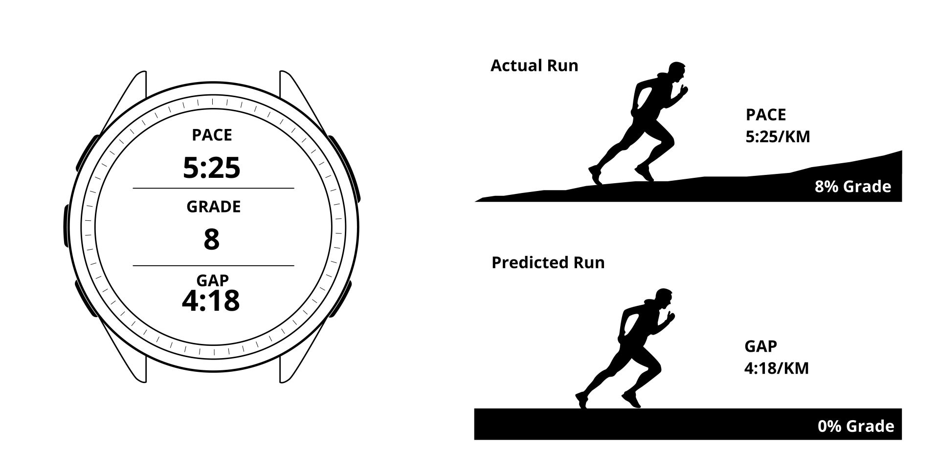 Grade Adjusted-pace, nebo spíše česky „tempo s korekcí sklonu“. Endura dokáží zobrazit přepočet tempa na ekvivalent úsilí pro srovnání běhu po rovině a na skloněné trati. Je to krásná metrika, která Vám pomůže odhadnout správnou míru úsilí a tempa, abyste se na trati předčasně nezavařili.