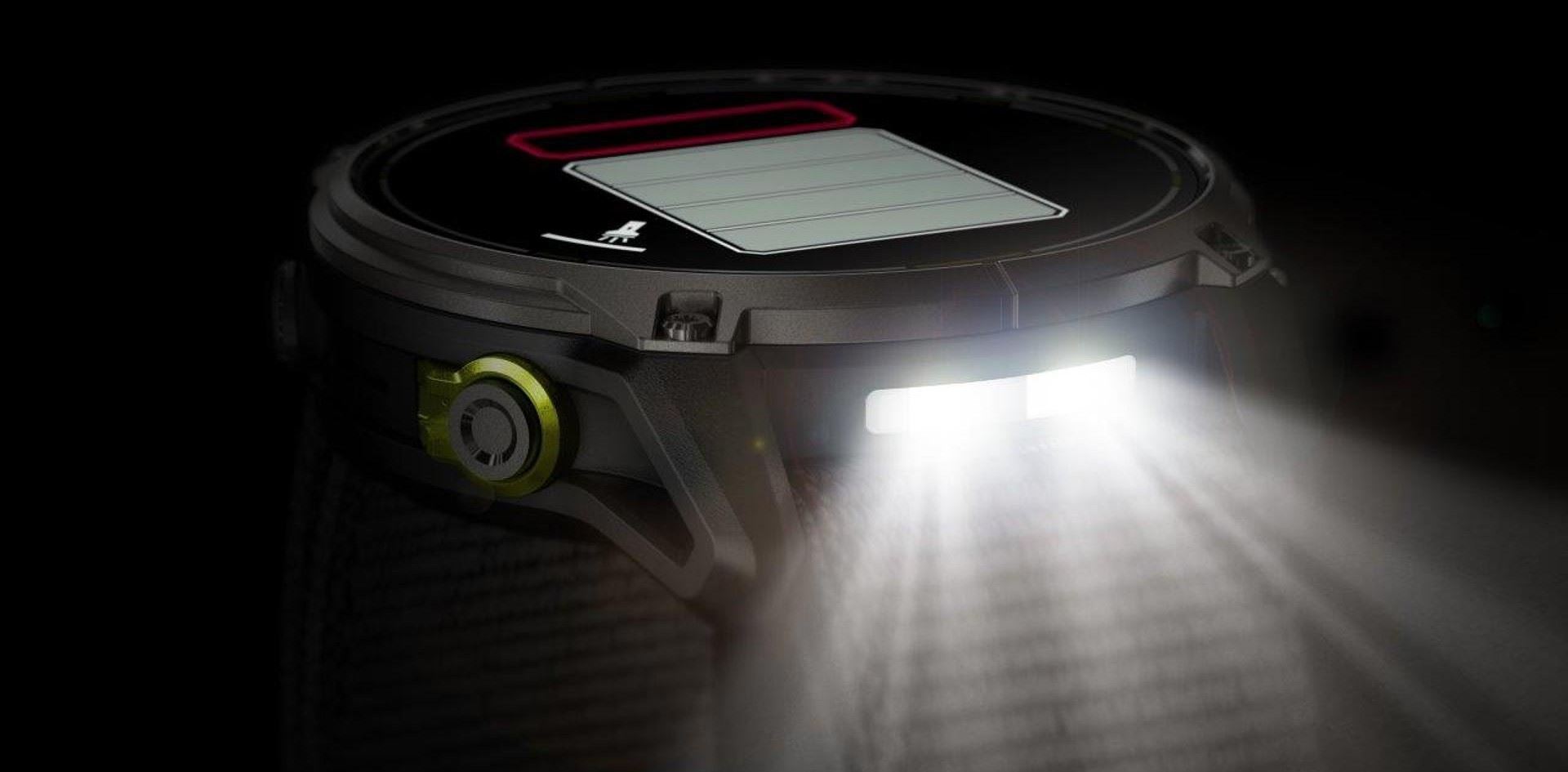 Velkou devízou je inovovaná LED svítilna. Není to žádná bludička, její světlo je intenzivní a víc než použitelné. Na první dobrou je rozhodně silnější jak moje F7X s chromatičností posunutou do studenějších tónů. Zhruba jako má Fénix 8. Jeho intenzita se dá stejně jako u ostatních hodinek Garmin měnit ve čtyřech krocích, plus jedna intenzita módu v červené.