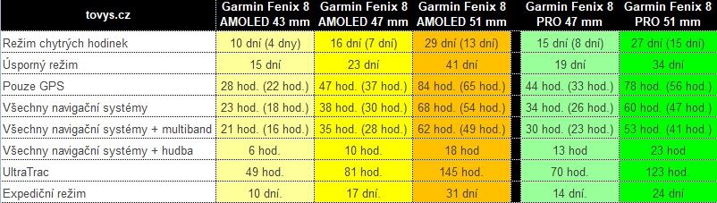 Rozměry, hmotnosti a displeje u Fénix 8 Pro (47/51 mm) a srovnání s Fénix 8.