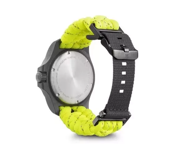 Hodinky z limitované edice mají vyztužené karbonové pouzdro (je vysoce odolné proti poškrábání), šroubovací korunku a antireflexní safírové sklíčko, které je odolné proti oděru. V pouzdru se skrývá švýcarský bateriový strojek Ronda 715. Ručičky i indexy jsou opatřené luminescenční vrstvou SuperLuminova. Ručně tkaný neonový řemínek je z velmi odolného lana. Vodotěsnost je do úctyhodných 20 metrů - to všechno jsou vlastnosti, za kterými je neuvěřitelná výdrž.
