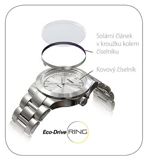 Nový systém Eco-Drive - světlo je přijímáno obvodovým kroužkem číselníku