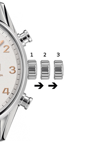 1. Ruční nátah pera (automat) nebo volný prokluz (quartz)