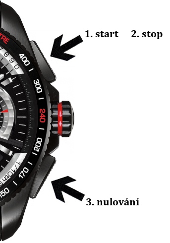 Nastavování (používání) chronografu: 1. start 2. stop 3. nulování