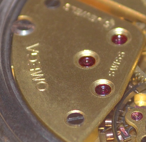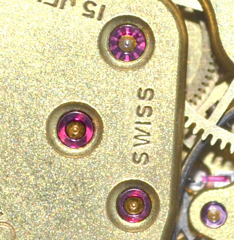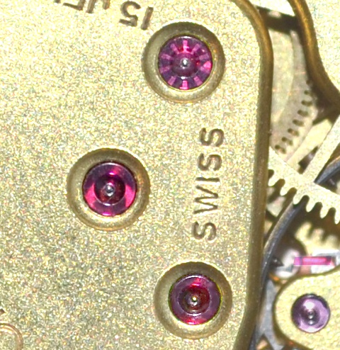 Kamenové uložení hodinkového strojku s olejovými miskami