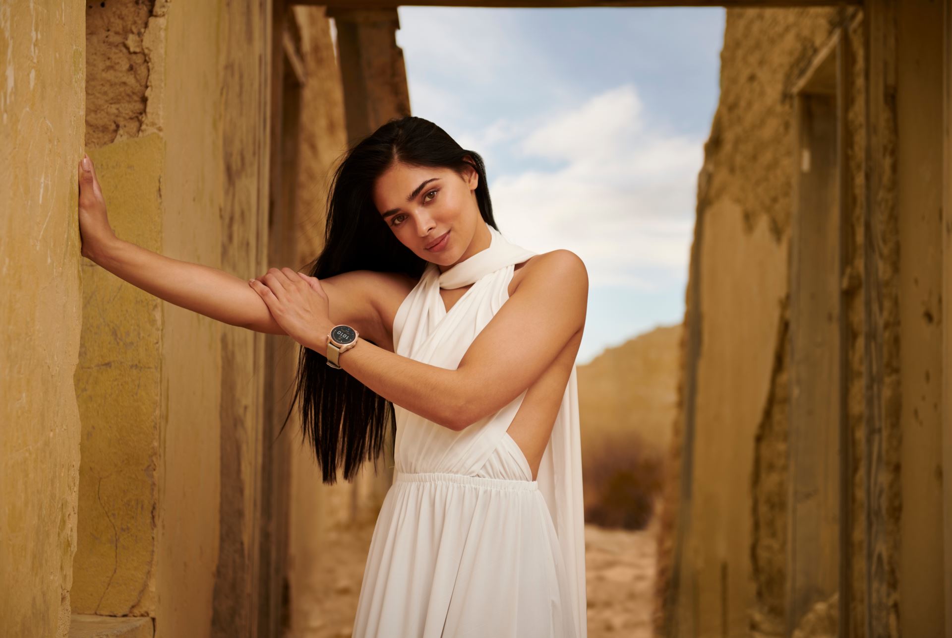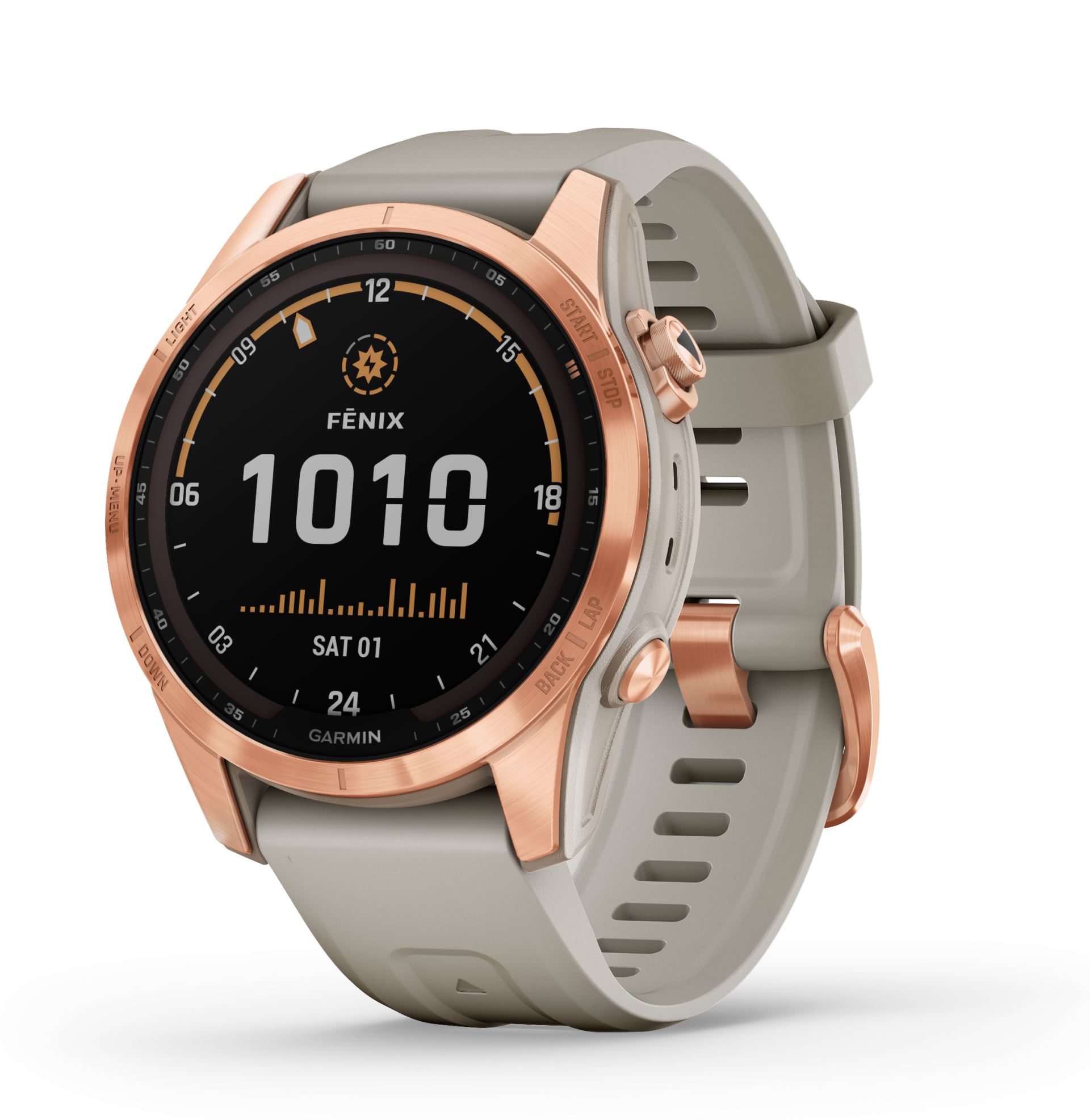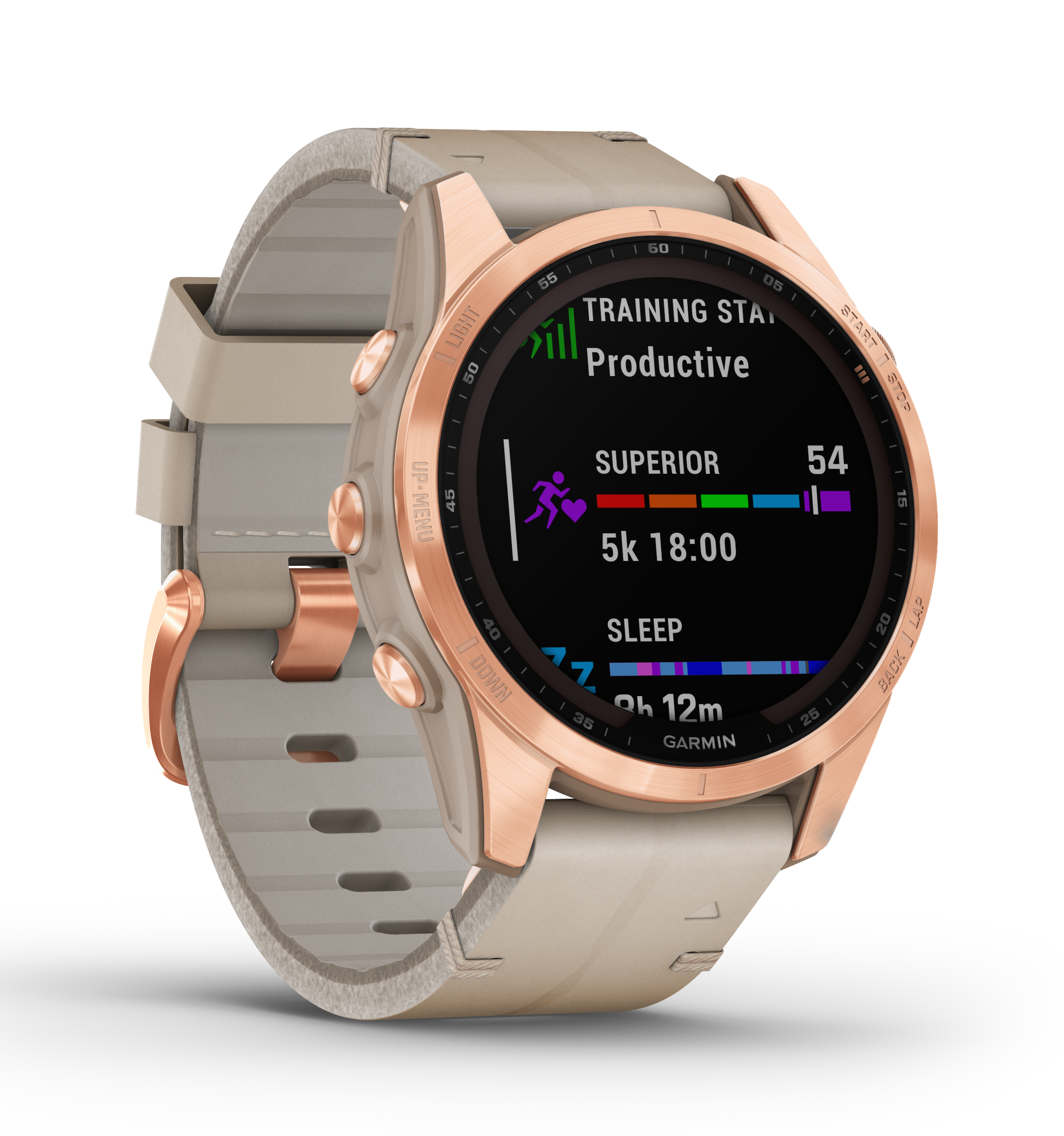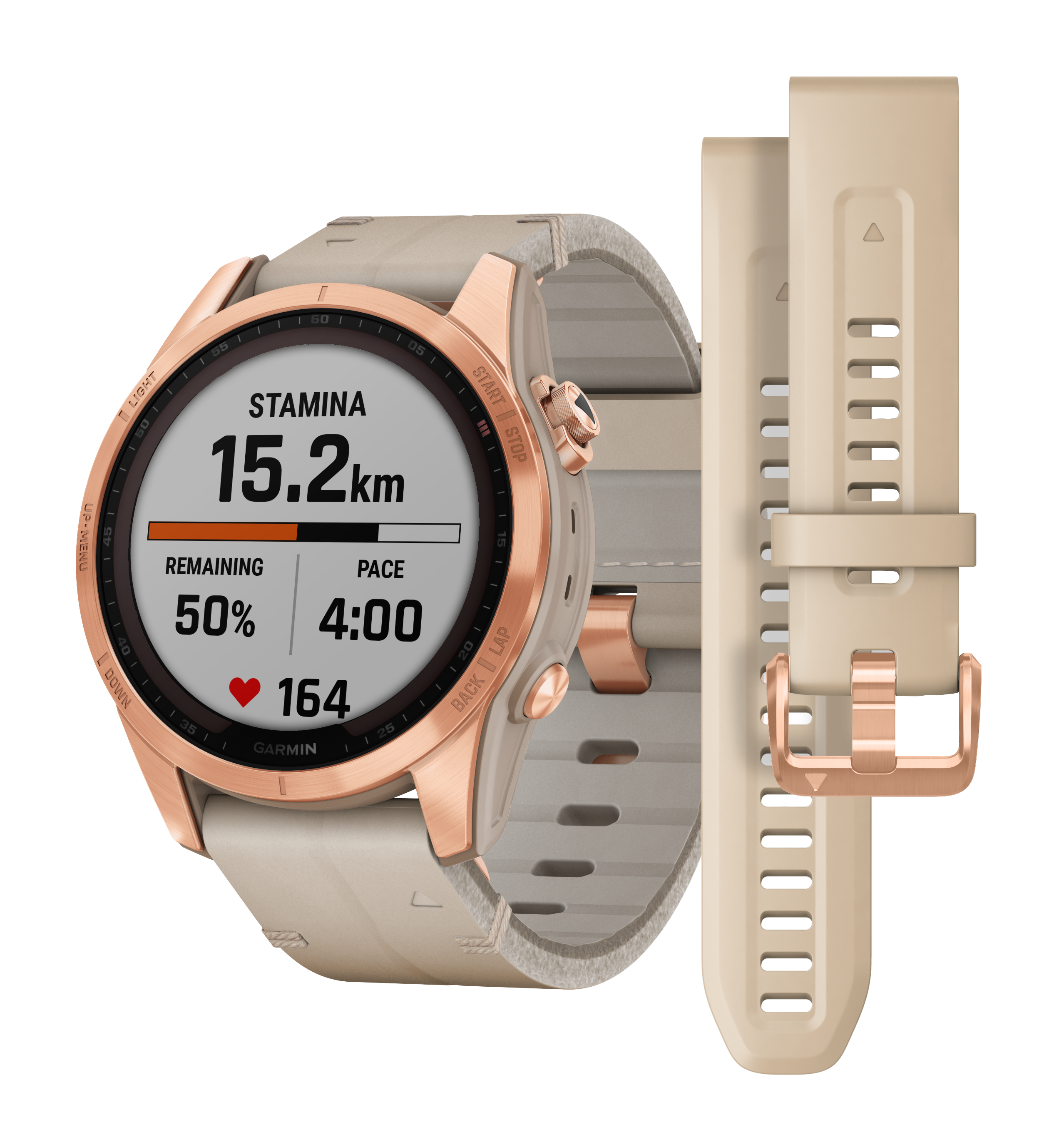Garmin - Titan Rose Gold / Rose Gold Band and Limestone Leather Band and Silicone Band