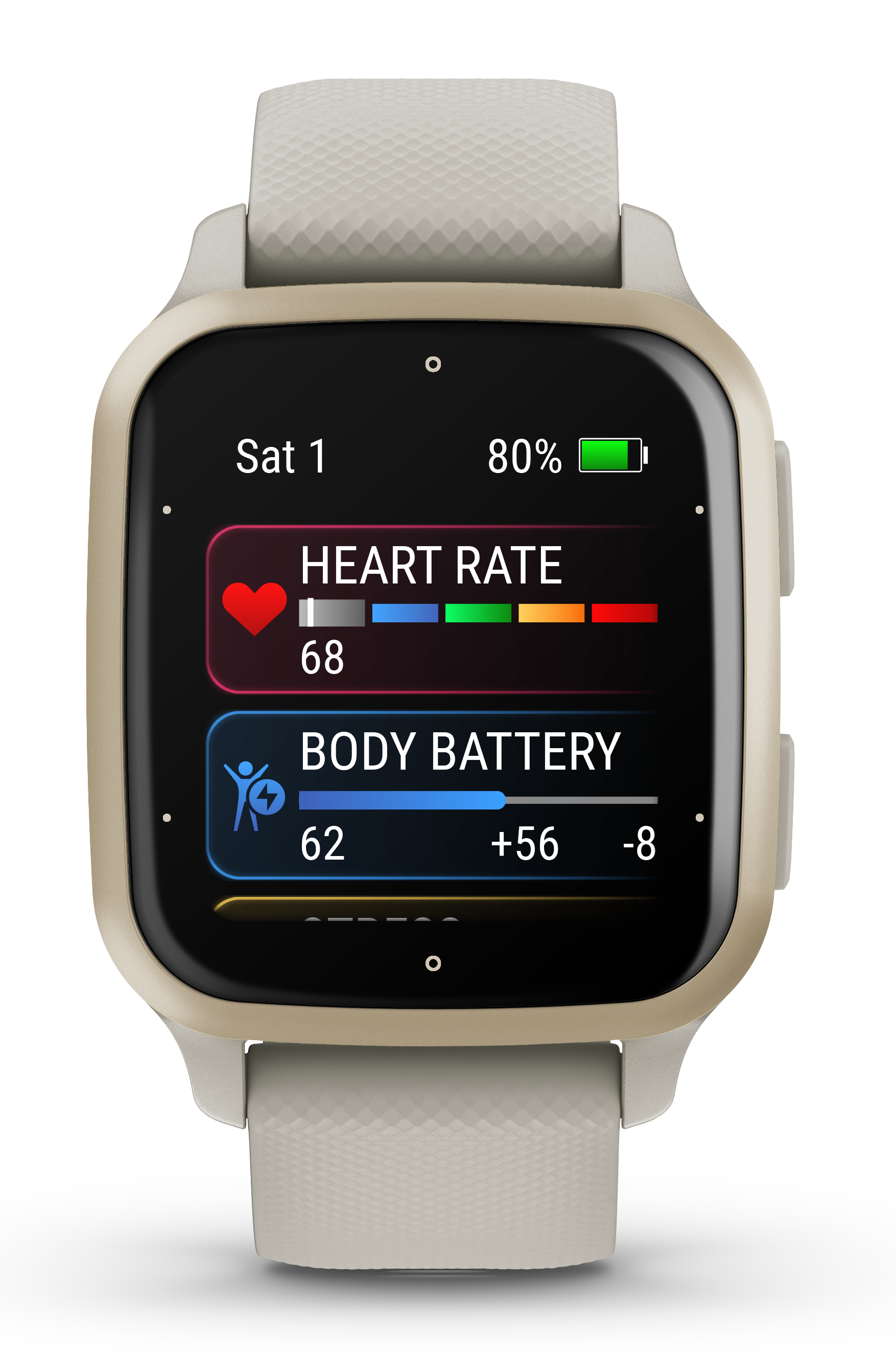 Garmin - Venu® Sq 2 Music Edition - Cream Gold / French Grey silicone band