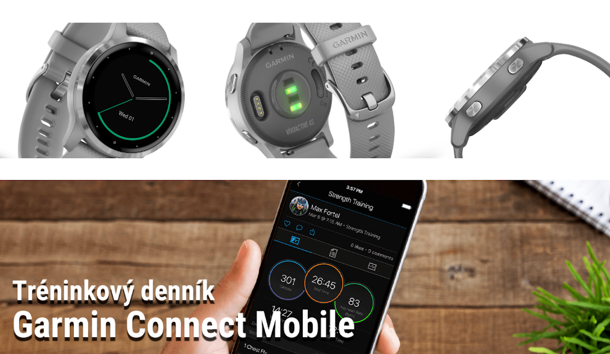 Lze donahrát do telefonu nebo PC:Online tréninkový deník Garmin Connect pro vyhodnocování dat z Vašich hodinek