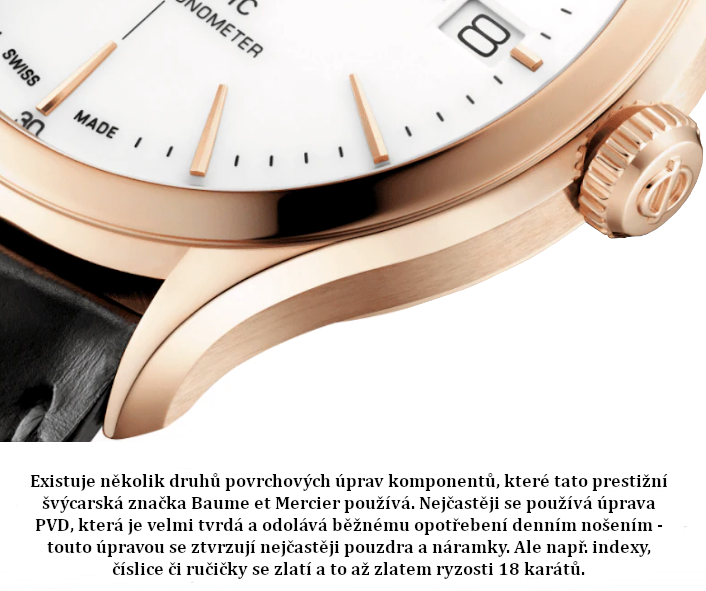 která je jedna z nejstabilnějších. Baume & Mercier používá zlato o ryzosti 18
