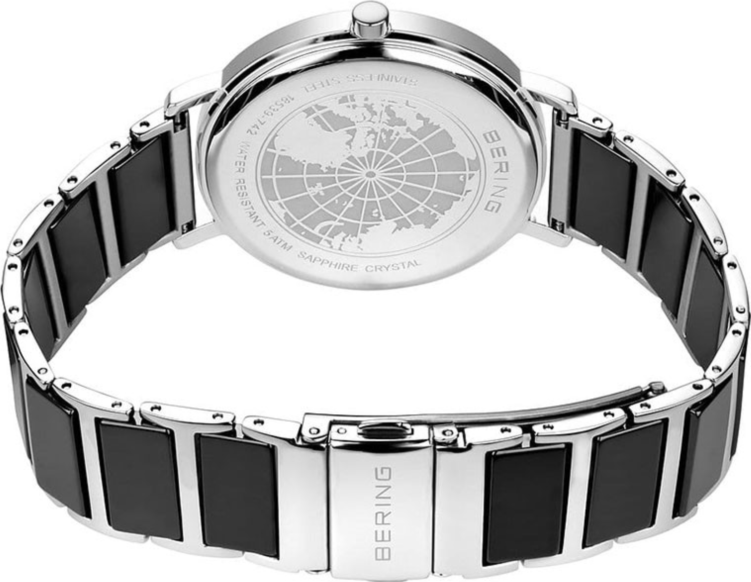 • 36 měsíců záruky + 12 měsíců pozáruční servis zdarma u nás na prodejně (Tím máte na 48 měsíců o hodinky postaráno). Zde více o životnosti hodinek a podmínkách bezplatného pozáručního servisu  → .Životnost hodinek je určena přímo životností strojku. Automatické strojky mají životnost při pravidelném servisu 1x za 7 - 10 let prakticky neomezenou, lze uvádět, že automatické mechanické strojky jsou generační záležitost. Quartzové strojky jsou závislé na životnosti integrovaného obvodu, který je cca. 20 - 25 let (poté lze strojek vyměnit). Pokud se závada na hodinkách neobjeví do prvního půl roku nošení, hodinky jsou vyrobené v pořádku a délka záruky bývá v naprosté většině formalita. Náš pozáruční servis zdarma se vztahuje na případné závady strojku - na preventivní čištění a mazání v případě správné funkčnosti strojku se pozáruční servis nevztahuje (zákazník může chtít vyčistit a namazat strojek ve vlastním zájmu). Automatické hodinky čeká první celkové vyčištění a namazání strojku novými oleji a u quartzových hodinek první výměna baterie. Toto může nastat až za oněch cca. 8 let, ale také to může nastat v prvních letech nošení, jelikož hodinky (strojek), než jsou zakoupeny uživatelem, nějakou dobu na užívání čekají a po tuto dobu oleje stárnou. Proto máme prodloužený bezplatný servis, abyste v případě, že se toto bude týkat Vašich hodinek (hodinky zastavují nebo extrémě pozdí), nemuseli za vyčištění, namazání a vyregulování na přesný čas platit (např. u cca. 6 hodinek z 10 nových prodaných je potřeba v prvních 5 letech vyčistit krokové ústrojí, což stojí kolem 2 500 Kč a u nás to máte zdarma. Čisté krokové ústrojí = přesný chod hodinek). V případě quartzových hodinek máte po celou dobu nošení hodinek výměnu baterie zdarma. V případě quartzových hodinek máte po celou dobu nošení hodinek výměnu baterie zdarma. Pro hodinky nabíjených světlem (Solár, Eco-drive) se tato služba nevztahuje (akumulátory v těchto systémech mají ale nepoměrně delší životnost oproti běžným bateriím).
