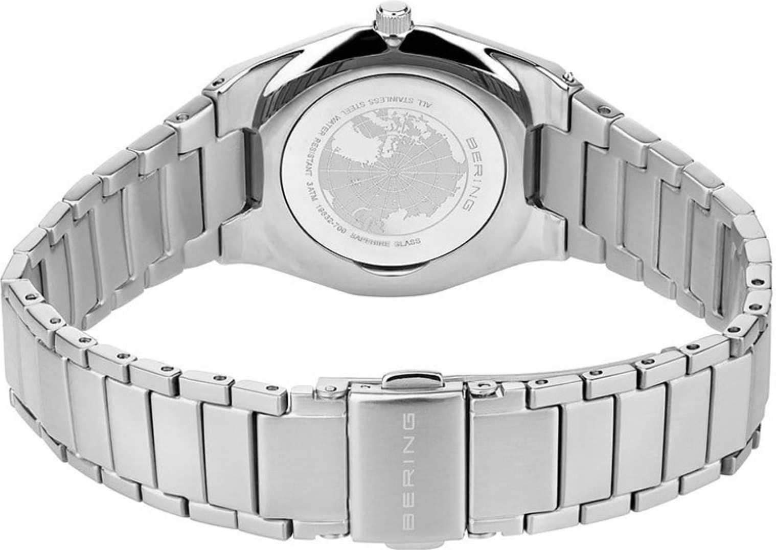• 36 měsíců záruky + 12 měsíců pozáruční servis zdarma u nás na prodejně (Tím máte na 48 měsíců o hodinky postaráno). Zde více o životnosti hodinek a podmínkách bezplatného pozáručního servisu  → .Životnost hodinek je určena přímo životností strojku. Automatické strojky mají životnost při pravidelném servisu 1x za 7 - 10 let prakticky neomezenou, lze uvádět, že automatické mechanické strojky jsou generační záležitost. Quartzové strojky jsou závislé na životnosti integrovaného obvodu, který je cca. 20 - 25 let (poté lze strojek vyměnit). Pokud se závada na hodinkách neobjeví do prvního půl roku nošení, hodinky jsou vyrobené v pořádku a délka záruky bývá v naprosté většině formalita. Náš pozáruční servis zdarma se vztahuje na případné závady strojku - na preventivní čištění a mazání v případě správné funkčnosti strojku se pozáruční servis nevztahuje (zákazník může chtít vyčistit a namazat strojek ve vlastním zájmu). Automatické hodinky čeká první celkové vyčištění a namazání strojku novými oleji a u quartzových hodinek první výměna baterie. Toto může nastat až za oněch cca. 8 let, ale také to může nastat v prvních letech nošení, jelikož hodinky (strojek), než jsou zakoupeny uživatelem, nějakou dobu na užívání čekají a po tuto dobu oleje stárnou. Proto máme prodloužený bezplatný servis, abyste v případě, že se toto bude týkat Vašich hodinek (hodinky zastavují nebo extrémě pozdí), nemuseli za vyčištění, namazání a vyregulování na přesný čas platit (např. u cca. 6 hodinek z 10 nových prodaných je potřeba v prvních 5 letech vyčistit krokové ústrojí, což stojí kolem 2 500 Kč a u nás to máte zdarma. Čisté krokové ústrojí = přesný chod hodinek). V případě quartzových hodinek máte po celou dobu nošení hodinek výměnu baterie zdarma. V případě quartzových hodinek máte po celou dobu nošení hodinek výměnu baterie zdarma. Pro hodinky nabíjených světlem (Solár, Eco-drive) se tato služba nevztahuje (akumulátory v těchto systémech mají ale nepoměrně delší životnost oproti běžným bateriím).