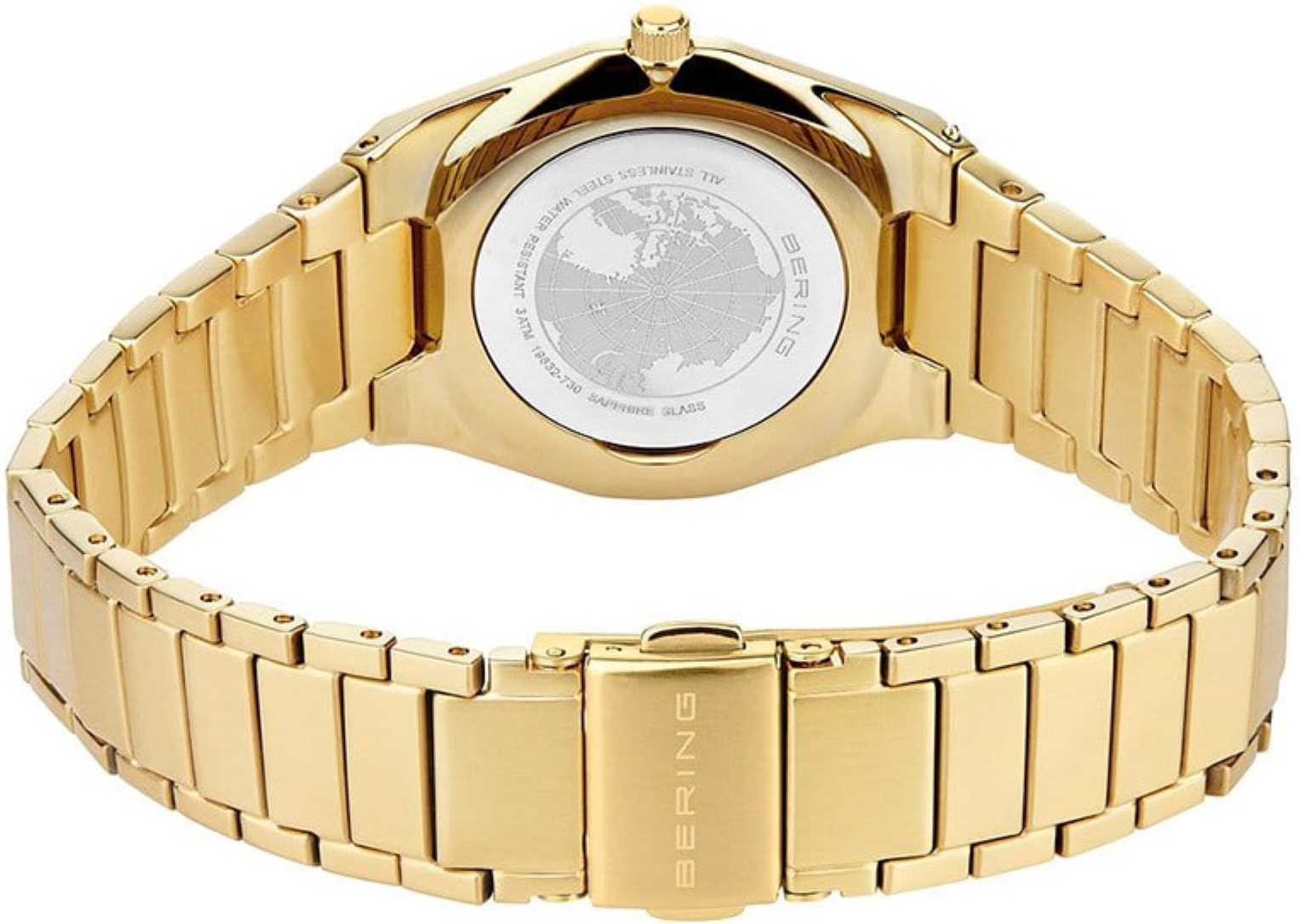 • 36 měsíců záruky + 12 měsíců pozáruční servis zdarma u nás na prodejně (Tím máte na 48 měsíců o hodinky postaráno). Zde více o životnosti hodinek a podmínkách bezplatného pozáručního servisu  → .Životnost hodinek je určena přímo životností strojku. Automatické strojky mají životnost při pravidelném servisu 1x za 7 - 10 let prakticky neomezenou, lze uvádět, že automatické mechanické strojky jsou generační záležitost. Quartzové strojky jsou závislé na životnosti integrovaného obvodu, který je cca. 20 - 25 let (poté lze strojek vyměnit). Pokud se závada na hodinkách neobjeví do prvního půl roku nošení, hodinky jsou vyrobené v pořádku a délka záruky bývá v naprosté většině formalita. Náš pozáruční servis zdarma se vztahuje na případné závady strojku - na preventivní čištění a mazání v případě správné funkčnosti strojku se pozáruční servis nevztahuje (zákazník může chtít vyčistit a namazat strojek ve vlastním zájmu). Automatické hodinky čeká první celkové vyčištění a namazání strojku novými oleji a u quartzových hodinek první výměna baterie. Toto může nastat až za oněch cca. 8 let, ale také to může nastat v prvních letech nošení, jelikož hodinky (strojek), než jsou zakoupeny uživatelem, nějakou dobu na užívání čekají a po tuto dobu oleje stárnou. Proto máme prodloužený bezplatný servis, abyste v případě, že se toto bude týkat Vašich hodinek (hodinky zastavují nebo extrémě pozdí), nemuseli za vyčištění, namazání a vyregulování na přesný čas platit (např. u cca. 6 hodinek z 10 nových prodaných je potřeba v prvních 5 letech vyčistit krokové ústrojí, což stojí kolem 2 500 Kč a u nás to máte zdarma. Čisté krokové ústrojí = přesný chod hodinek). V případě quartzových hodinek máte po celou dobu nošení hodinek výměnu baterie zdarma. V případě quartzových hodinek máte po celou dobu nošení hodinek výměnu baterie zdarma. Pro hodinky nabíjených světlem (Solár, Eco-drive) se tato služba nevztahuje (akumulátory v těchto systémech mají ale nepoměrně delší životnost oproti běžným bateriím).
