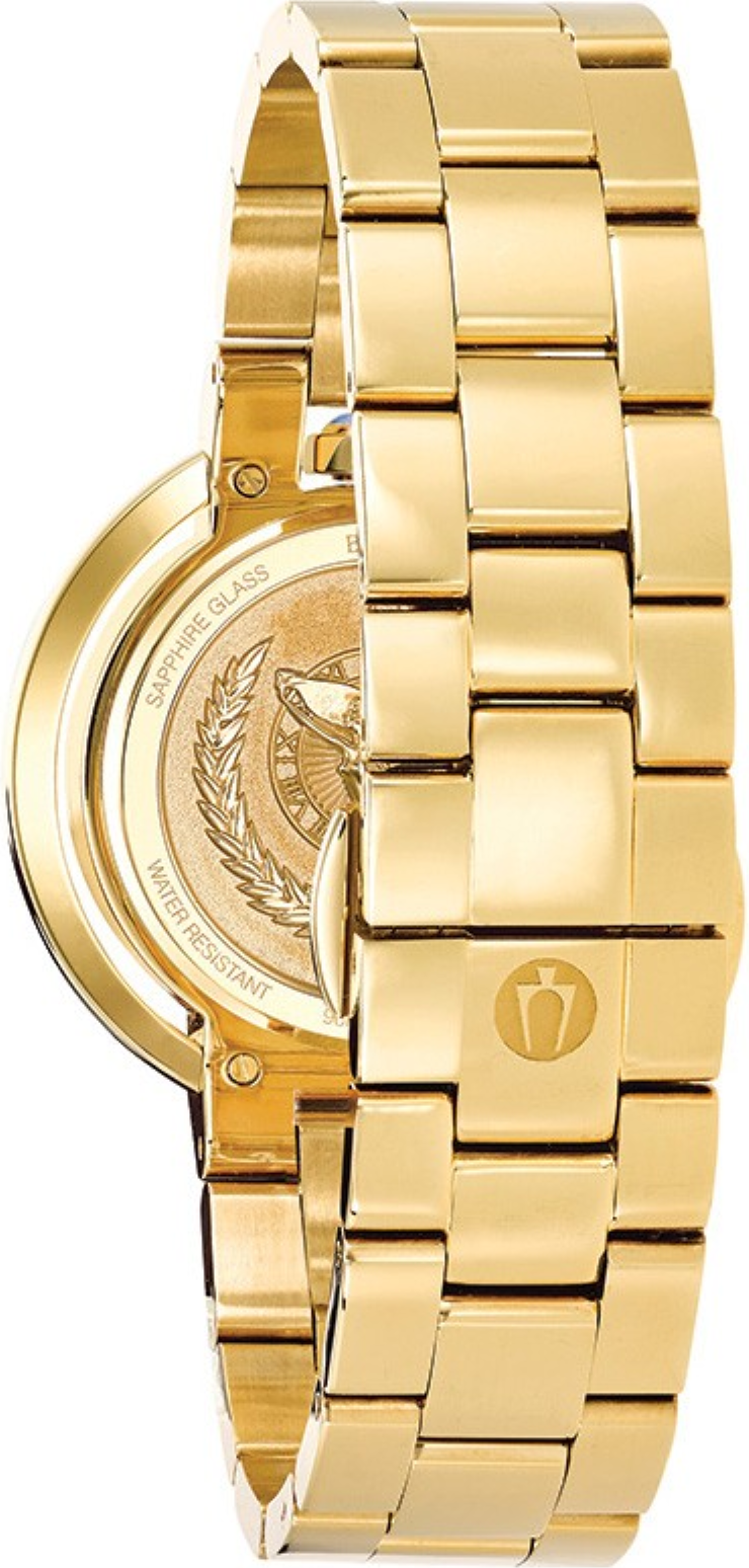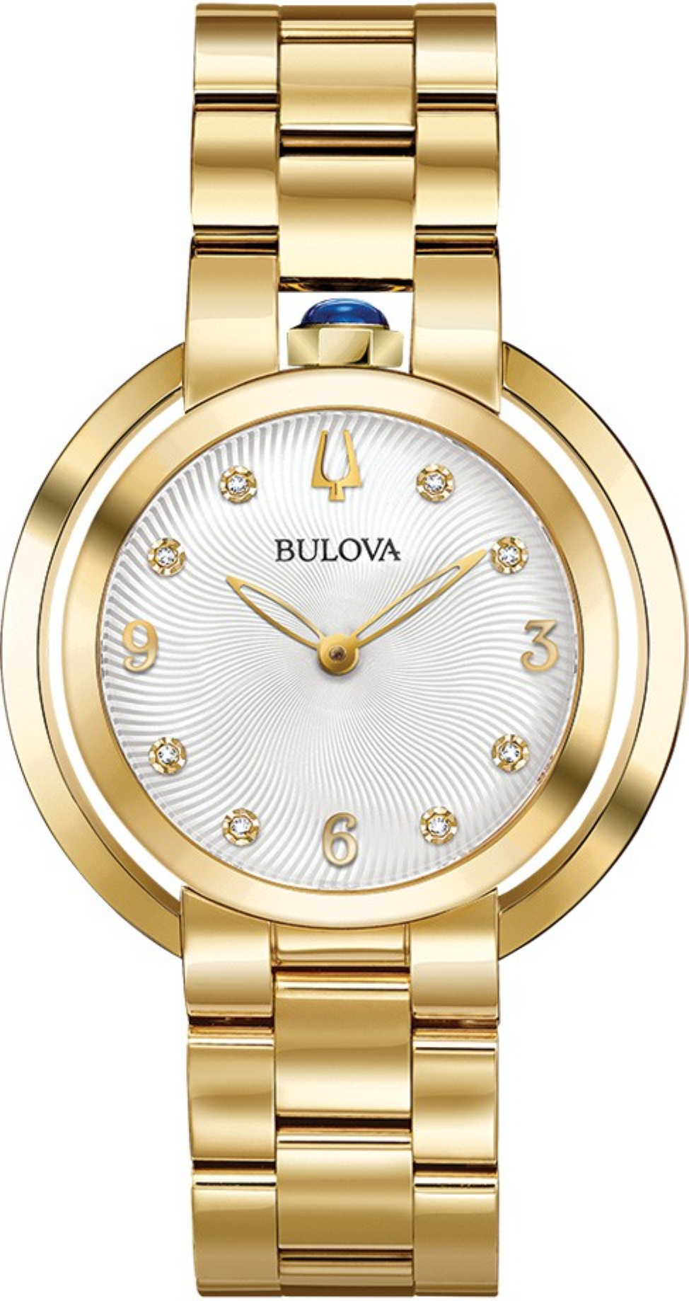 Tento model patří do dámské kolekce Bulova Rubayiat 97P125. Pouzdro je z nerezové oceli povrchově upravené velmi tvrdou úpravou IP v odstínu žlutého zlata. Bílý perleťový číselník je osázen 8 diamanty a tah je také z nerezové oceli pokovené IP úpravou v barvě žlutého zlata. Precizní číselník a decentní ručičky jsou kryty safírovým sklem ...