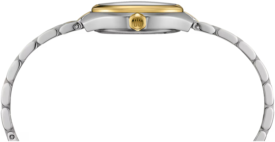 • Funkce a popis:Čas, datum, švýcarský quartzový strojek F04.412 Precidrive™ = přesnost chodu do 10 vteřin za rok, zapínání pásku = motýlková bezpečnostní spona, perleťový číselník s jemným zdobením diamantem, safírové sklo s antireflexní vrstvou, osvětlení Super-LumiNova® na ručkách a indexech