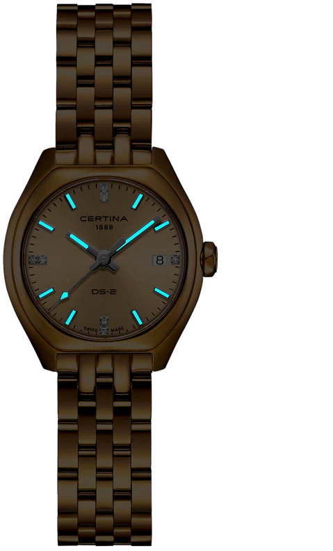 odolnost proti nárazům, abnormální tvrdost - díky tomu nenarušení povrchu ani při velké fyzické zátěži a nádherná čirá čistota, která zůstává po celou životnost sklíčka. Čtení času na hodinkách je poté radost - sklíčko je totiž stále jako nové. Safírová sklíčka se vyrábí v různých podobách a tvarech.Super-LumiNova (SLN) je luminiscenční materiál s vlastnostmi fosforu. Typ BG W9, který Certina používá, vydává ve tmě modravé světlo. Tato svítivost se ve tmě postupně ztrácí, ale na světle se automaticky obnovuje pro naplnění kapacity materiálů pro další noční či večerní svítivost.PVD (physical vapour deposition) je novodobá, velmi kvalitní metoda pokrývání materiálů. Například odstín zlata může být takto přenesen na materiál typu ocel nebo titan a výsledný efekt je 100% autentický . Povrch je velmi tvrdý, odolný, nekorozivý, trvanlivý a barevně stálý.Tvrdé zlacení PVD se používá pro finální povrchovou úpravu pouzder a náramků.