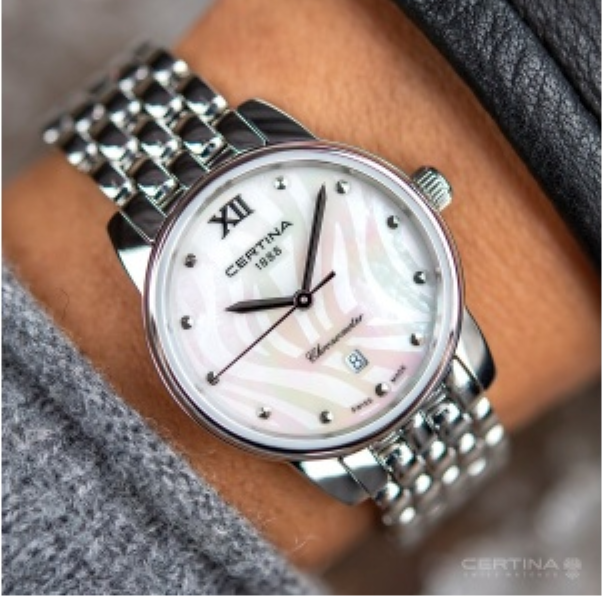odolnost proti nárazům, abnormální tvrdost - díky tomu nenarušení povrchu ani při velké fyzické zátěži a nádherná čirá čistota, která zůstává po celou životnost sklíčka. Čtení času na hodinkách je poté radost - sklíčko je totiž stále jako nové. Safírová sklíčka se vyrábí v různých podobách a tvarech.Přesný a ještě přesnější - to je chronometr. Chronometr jsou hodinky, jejichž přesnost byla oficiálně testována a ověřena nezávislou laboratoří. Tento model byl testován oficiální švýcarskou testovací laboratoří Control Officiel Suisse des Chronometres (COSC) a byl mu udělen certifikát kvalityUšlechtilá nerez ocel 316L, kterou Certina používá, je mimořádně odolná,