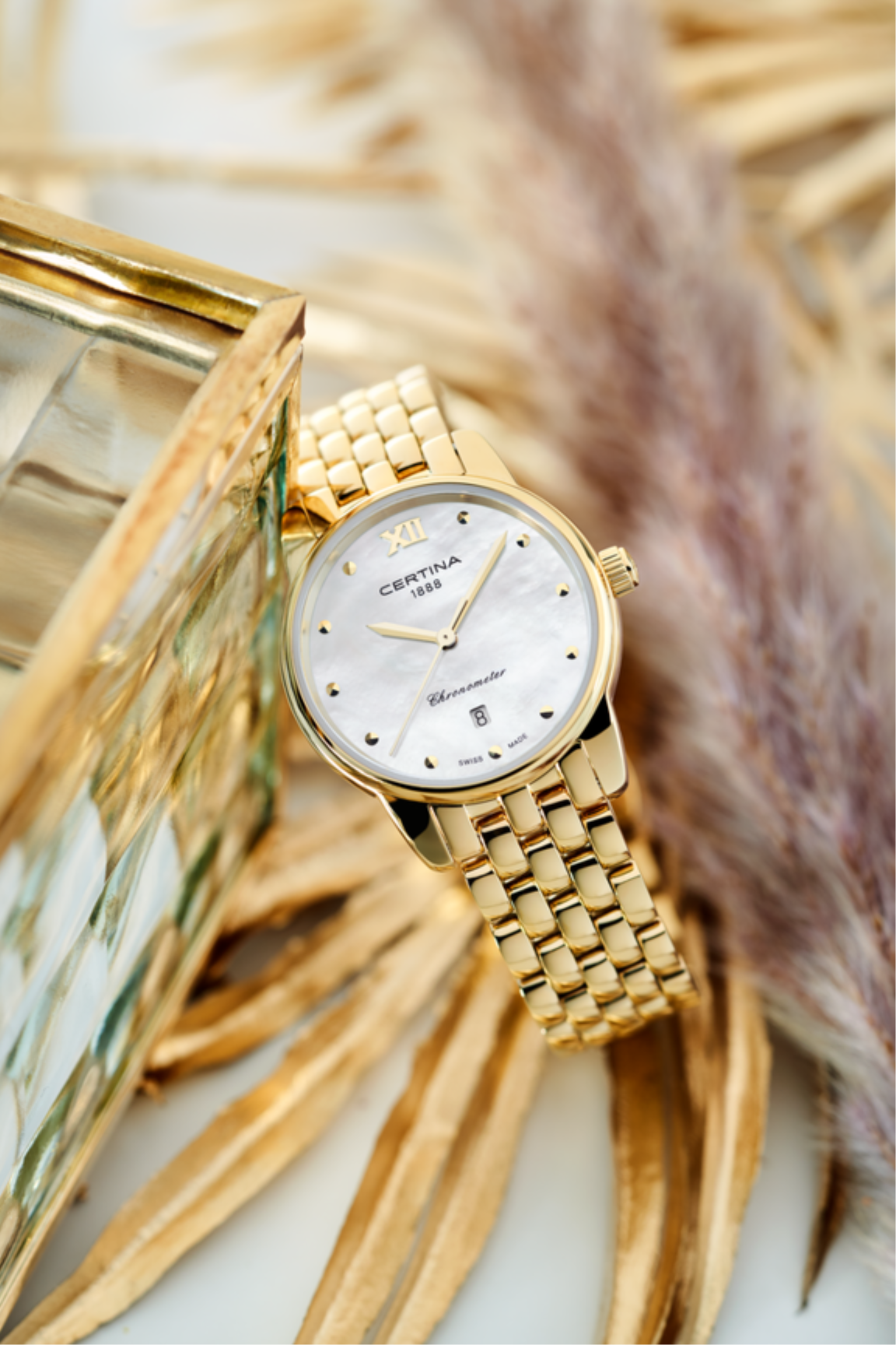 Dámské hodinky Certina DS-8 Lady DS C033.051.33.118.00 si své majitelky si získávají především elegantním vzhledem, atraktivním zlatým designem a precizním zpracováním.
