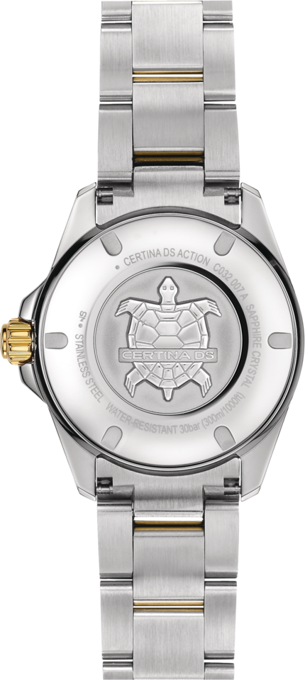 Modelová řada DS Action je mezi milovníky kolekcí značky Certina již dlouhodobým favoritem. Hodinky C032.007.22.116.00 o velikosti 34,5 mm vypadají úžasně na jakémkoliv dámském zápěstí a pyšní se jakostí, kterou jsou tyto potápěčské hodinky známé, v mimořádně moderním a kompaktním designu.