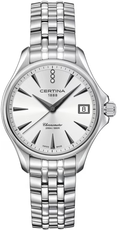 odolnost proti nárazům, abnormální tvrdost - díky tomu nenarušení povrchu ani při velké fyzické zátěži a nádherná čirá čistota, která zůstává po celou životnost sklíčka. Čtení času na hodinkách je poté radost - sklíčko je totiž stále jako nové. Safírová sklíčka se vyrábí v různých podobách a tvarech.Super-LumiNova (SLN) je luminiscenční materiál s vlastnostmi fosforu. Typ BG W9, který Certina používá, vydává ve tmě modravé světlo. Tato svítivost se ve tmě postupně ztrácí, ale na světle se automaticky obnovuje pro naplnění kapacity materiálů pro další noční či večerní svítivost.Přesný a ještě přesnější - to je chronometr. Chronometr jsou hodinky, jejichž přesnost byla oficiálně testována a ověřena nezávislou laboratoří. Tento model byl testován oficiální švýcarskou testovací laboratoří Control Officiel Suisse des Chronometres (COSC) a byl mu udělen certifikát kvalityUšlechtilá nerez ocel 316L, kterou Certina používá, je mimořádně odolná,