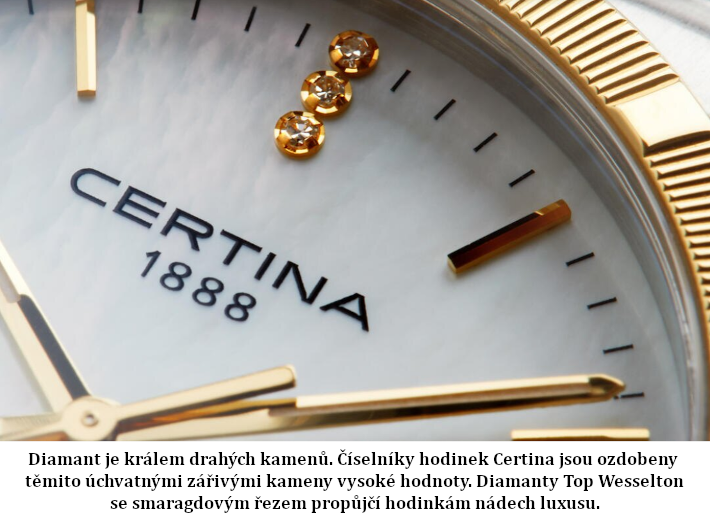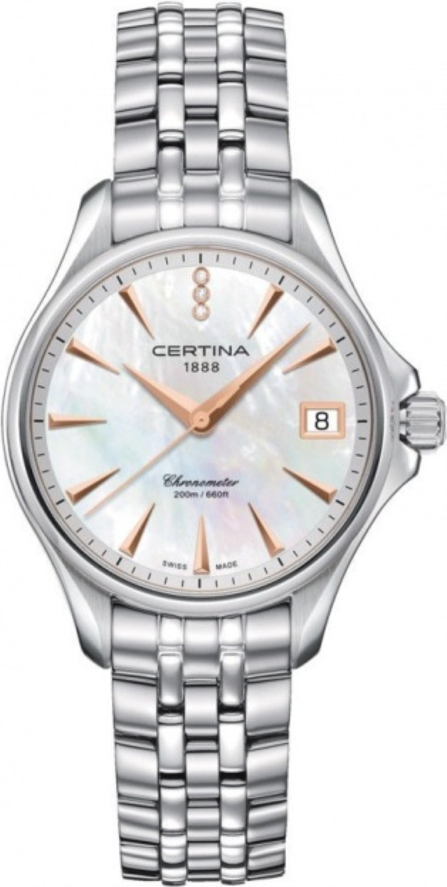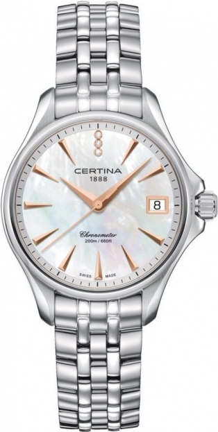 odolnost proti nárazům, abnormální tvrdost - díky tomu nenarušení povrchu ani při velké fyzické zátěži a nádherná čirá čistota, která zůstává po celou životnost sklíčka. Čtení času na hodinkách je poté radost - sklíčko je totiž stále jako nové. Safírová sklíčka se vyrábí v různých podobách a tvarech.Super-LumiNova (SLN) je luminiscenční materiál s vlastnostmi fosforu. Typ BG W9, který Certina používá, vydává ve tmě modravé světlo. Tato svítivost se ve tmě postupně ztrácí, ale na světle se automaticky obnovuje pro naplnění kapacity materiálů pro další noční či večerní svítivost.Přesný a ještě přesnější - to je chronometr. Chronometr jsou hodinky, jejichž přesnost byla oficiálně testována a ověřena nezávislou laboratoří. Tento model byl testován oficiální švýcarskou testovací laboratoří Control Officiel Suisse des Chronometres (COSC) a byl mu udělen certifikát kvalityUšlechtilá nerez ocel 316L, kterou Certina používá, je mimořádně odolná,