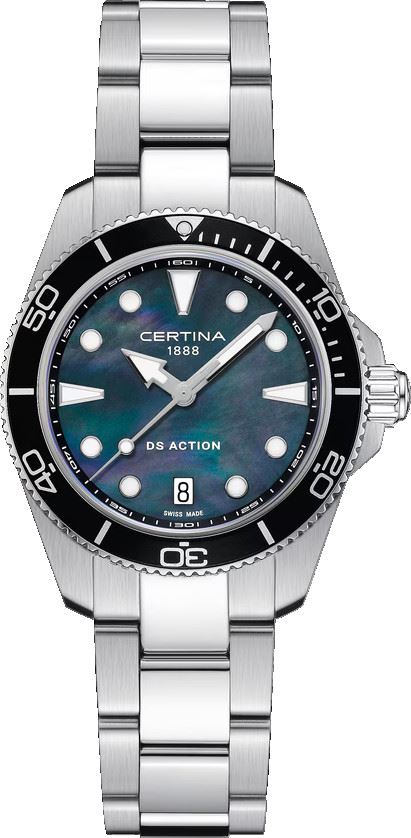 odolnost proti nárazům, abnormální tvrdost - díky tomu nenarušení povrchu ani při velké fyzické zátěži a nádherná čirá čistota, která zůstává po celou životnost sklíčka. Čtení času na hodinkách je poté radost - sklíčko je totiž stále jako nové. Safírová sklíčka se vyrábí v různých podobách a tvarech.Super-LumiNova (SLN) je luminiscenční materiál s vlastnostmi fosforu. Typ BG W9, který Certina používá, vydává ve tmě modravé světlo. Tato svítivost se ve tmě postupně ztrácí, ale na světle se automaticky obnovuje pro naplnění kapacity materiálů pro další noční či večerní svítivost.Ušlechtilá nerez ocel 316L, kterou Certina používá, je mimořádně odolná,