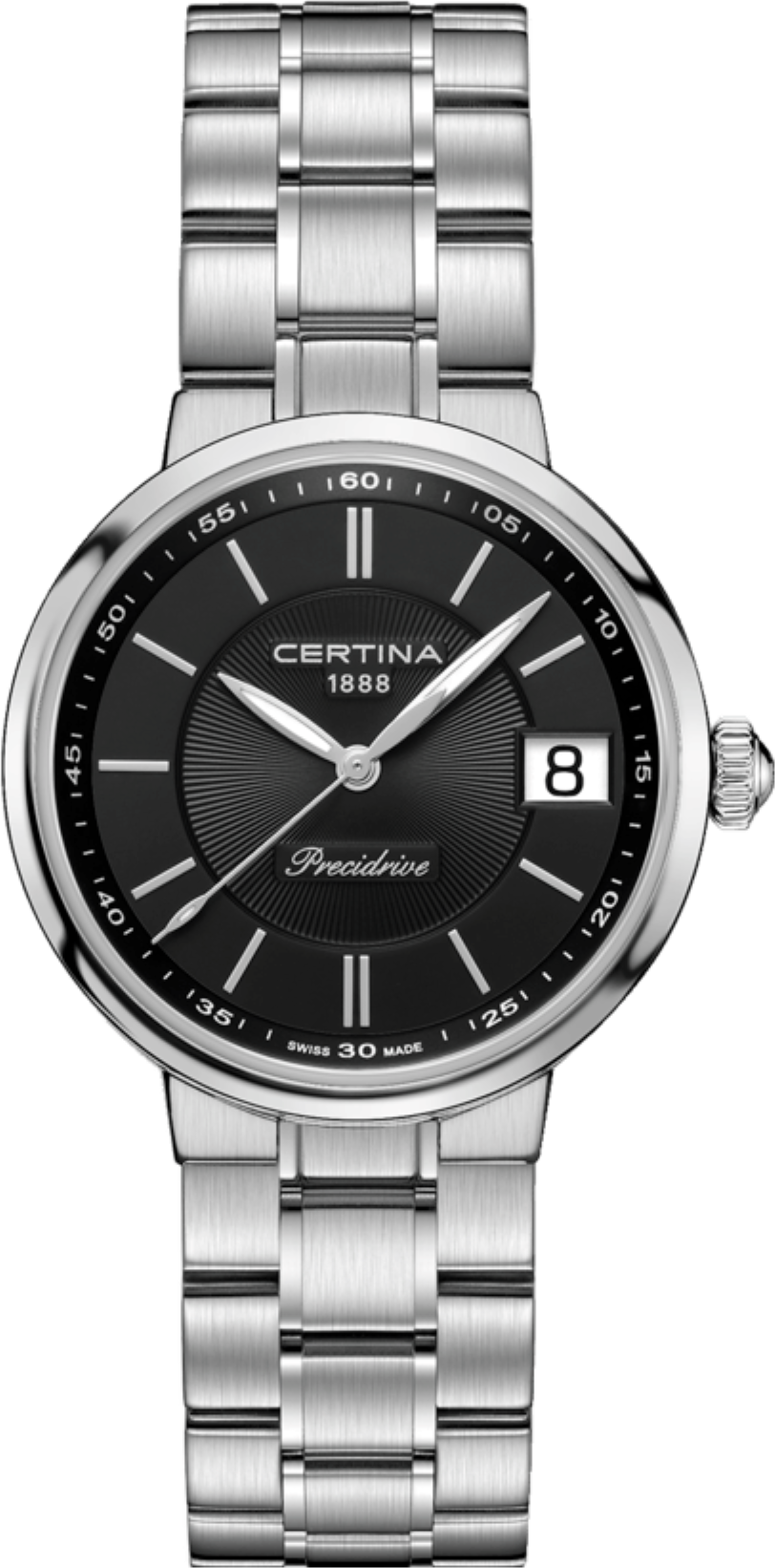 odolnost proti nárazům, abnormální tvrdost - díky tomu nenarušení povrchu ani při velké fyzické zátěži a nádherná čirá čistota, která zůstává po celou životnost sklíčka. Čtení času na hodinkách je poté radost - sklíčko je totiž stále jako nové. Safírová sklíčka se vyrábí v různých podobách a tvarech.Super-LumiNova (SLN) je luminiscenční materiál s vlastnostmi fosforu. Typ BG W9, který Certina používá, vydává ve tmě modravé světlo. Tato svítivost se ve tmě postupně ztrácí, ale na světle se automaticky obnovuje pro naplnění kapacity materiálů pro další noční či večerní svítivost.Přesný a ještě přesnější - to je chronometr. Chronometr jsou hodinky, jejichž přesnost byla oficiálně testována a ověřena nezávislou laboratoří. Tento model byl testován oficiální švýcarskou testovací laboratoří Control Officiel Suisse des Chronometres (COSC) a byl mu udělen certifikát kvalityUšlechtilá nerez ocel 316L, kterou Certina používá, je mimořádně odolná,
