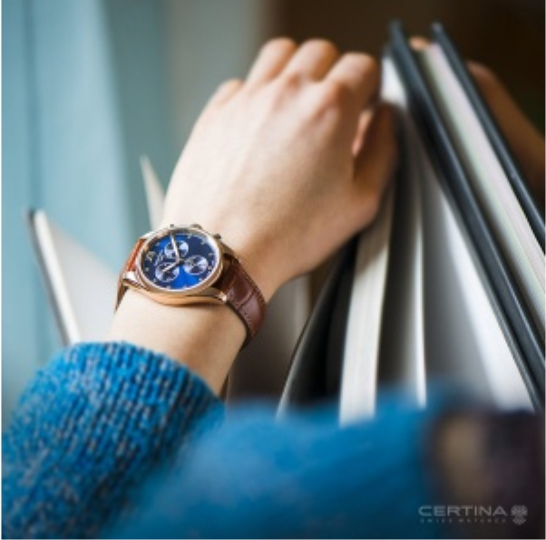 Vybrané modely Certina ukazují desetiny vteřiny na čítači chronografu na pozici