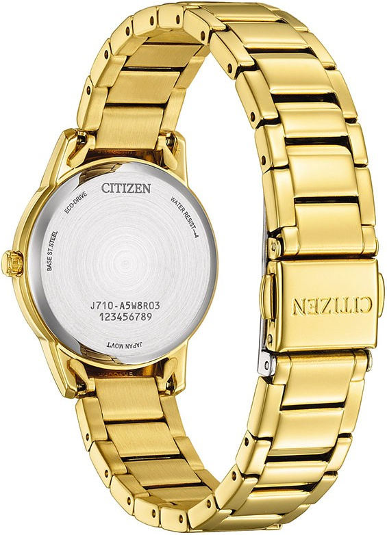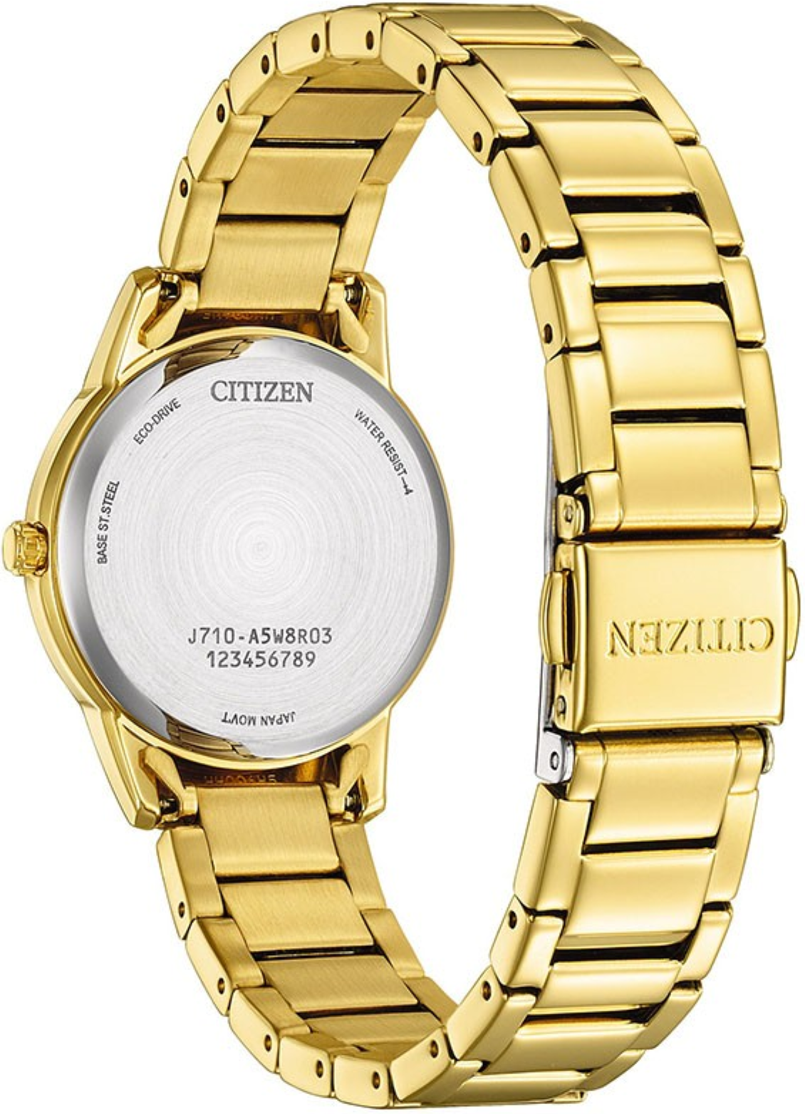 • Funkce a popis:Čas, datum, strojek quartz Japan Citizen Eco-drive Caliber J710 - kapacita akumulátoru (rezerva chodu) až 8 měsíců (cca. 240 dní), přesnost chodu = 0 - 0,5 vteřiny denně, indikace potřeby dobití akumulátoru (hodinky dvouvteřinovými intervaly vteřinové ručičky indikují málo energie v akumulátoru a upozorňují tímto majitele/majitelku hodinek na potřebu vystavení hodinek světlu pro dobití)