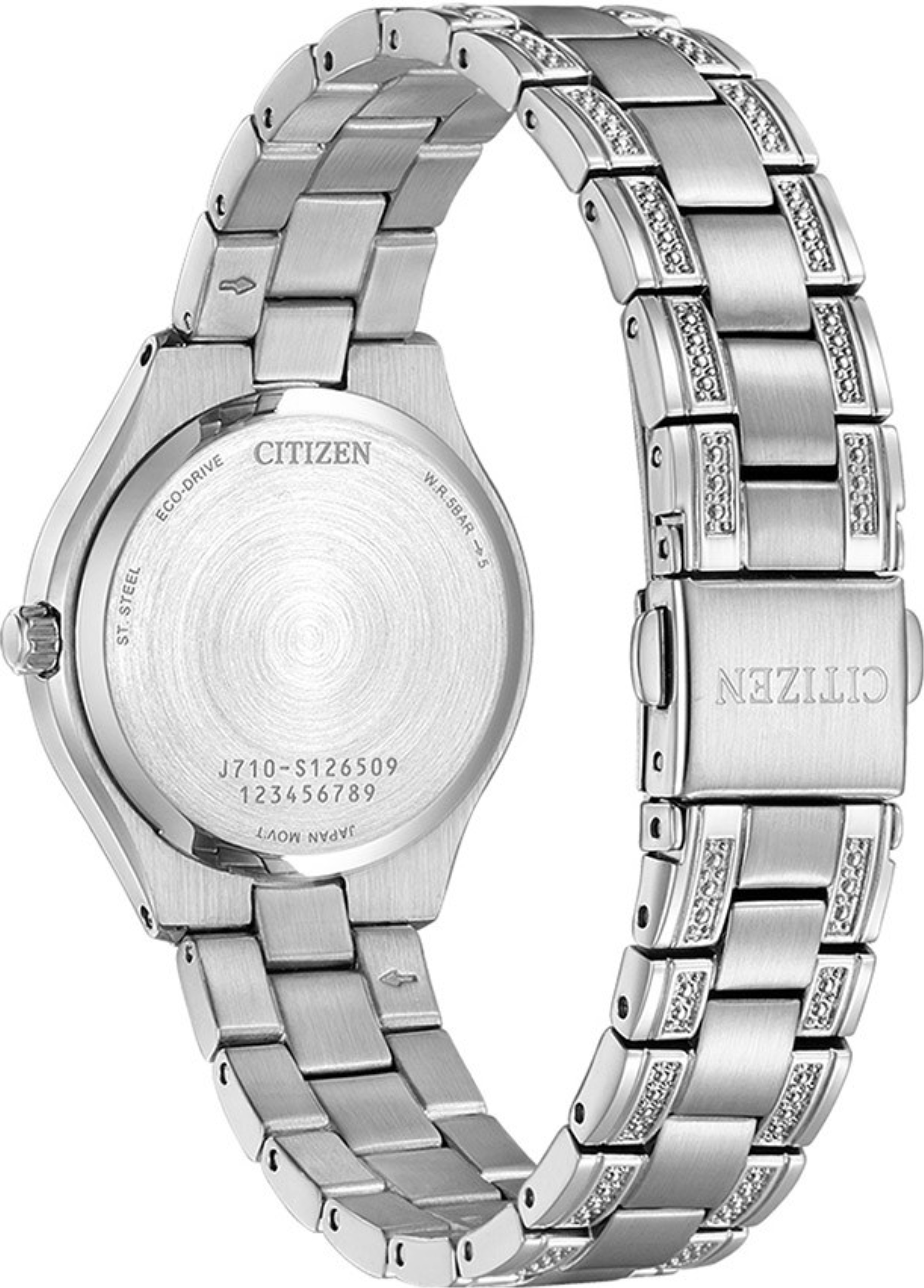 • Funkce a popis:Čas, datum, strojek quartz Japan Citizen Caliber J710 Eco-drive - kapacita akumulátoru (rezerva chodu) až 240 dní (8 měsíců), přesnost chodu = 0 - 0,5 vteřiny denně, indikace potřeby dobití akumulátoru (hodinky dvouvteřinovými intervaly vteřinové ručičky indikují málo energie v akumulátoru a upozorňují tímto majitele/majitelku hodinek na potřebu vystavení hodinek světlu pro dobití), ručičky jsou opatřeny luminiscenční vrstvou (po krátkém nasvícení je v noci po dlouhou dobu dobře čitelný čas)