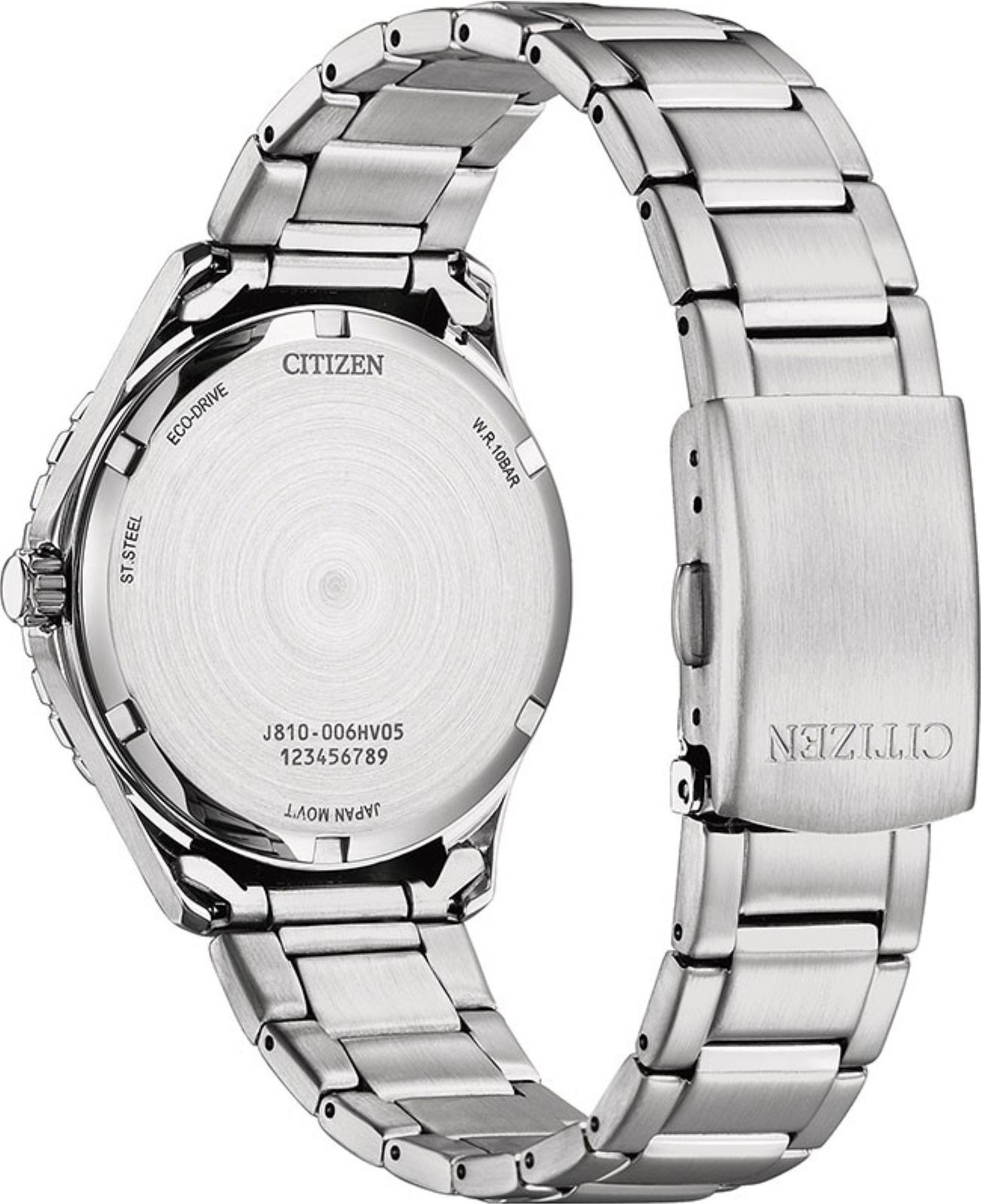 • Funkce a popis:Čas, datum, strojek quartz Japan Citizen Eco-drive Caliber J810 - kapacita akumulátoru (rezerva chodu) až 8 měsíců (cca. 240 dní), přesnost chodu = 0 - 0,5 vteřiny denně, indikace potřeby dobití akumulátoru (hodinky dvouvteřinovými intervaly vteřinové ručičky indikují málo energie v akumulátoru a upozorňují tímto majitele/majitelku hodinek na potřebu vystavení hodinek světlu pro dobití), ručičky a indexy jsou opatřeny luminiscenční vrstvou (po krátkém nasvícení je v noci po dlouhou dobu dobře čitelný čas)