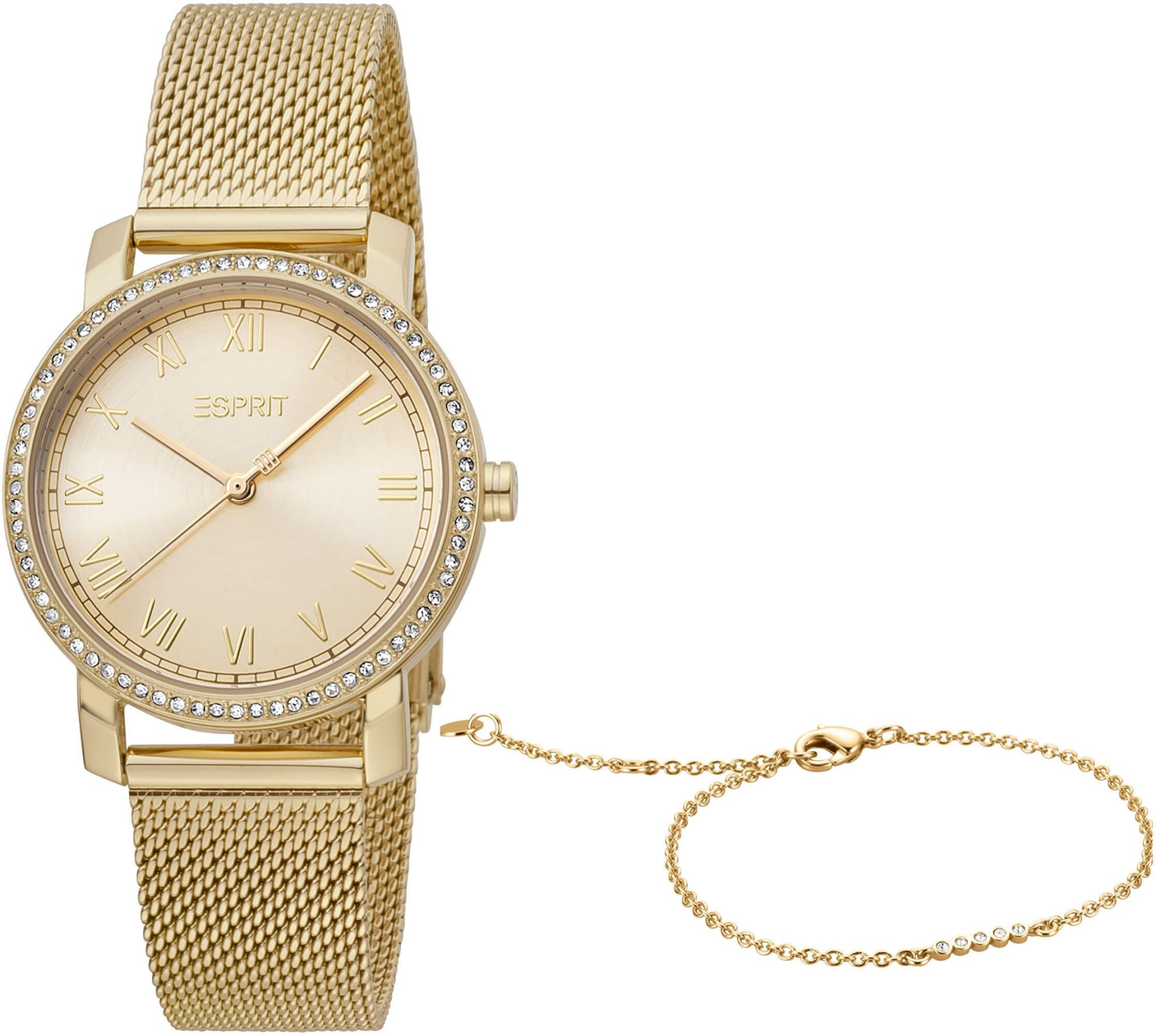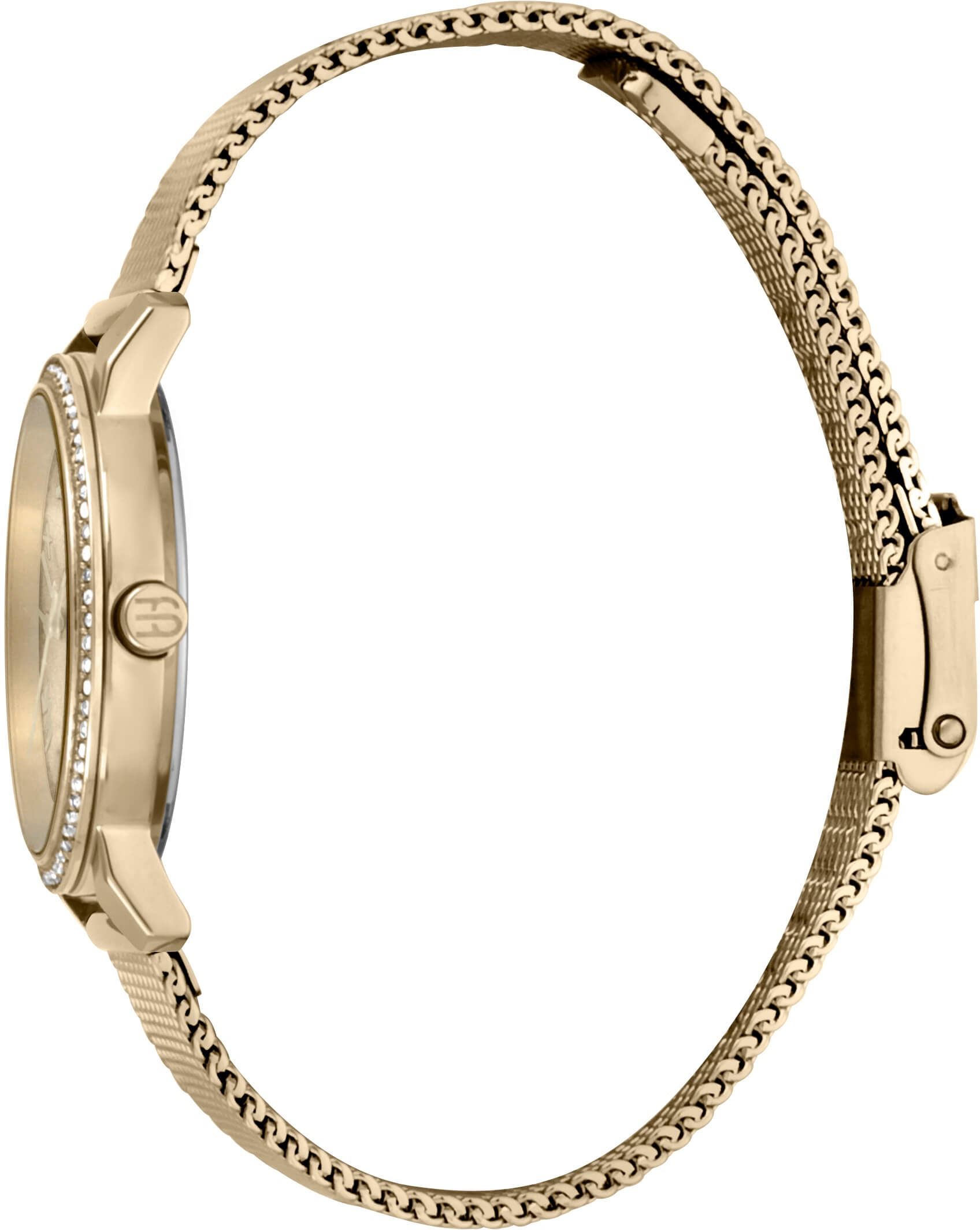 • Funkce a popis:Čas, strojek quartz = přesnost chodu do 0,5 vteřiny denně, lunetu zdobí skleněné kamínky, hodinky jsou dodávány s náramkem z nerezové oceli s PVD