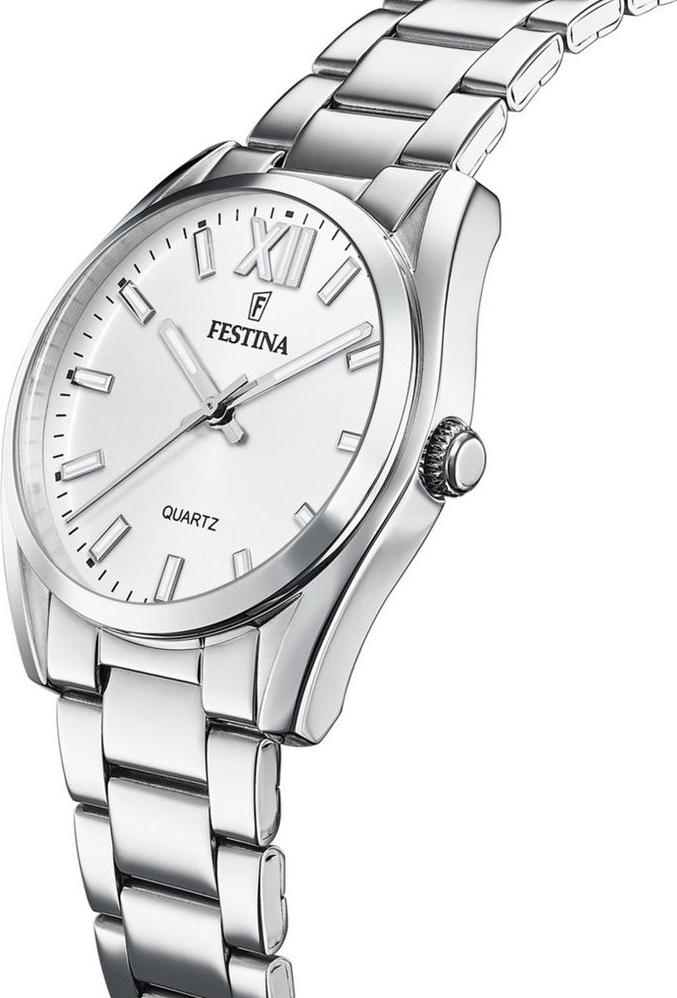 Festina Boyfriend Collection 20622/1 jsou dámské hodinky Festina navržené pro ženy, které chtějí výraznější, ale stále elegantní doplněk. Kolekce Boyfriend staví na větším průměru a čistých liniích, díky čemuž působí moderně a zároveň nadčasově. V tomto provedení zaujme především stříbrná barevnost a univerzální vzhled, který snadno sladíte s pracovním i volnočasovým outfitem. Model je veden jako analogový a poháněný bateriovým strojkem (quartz), ...