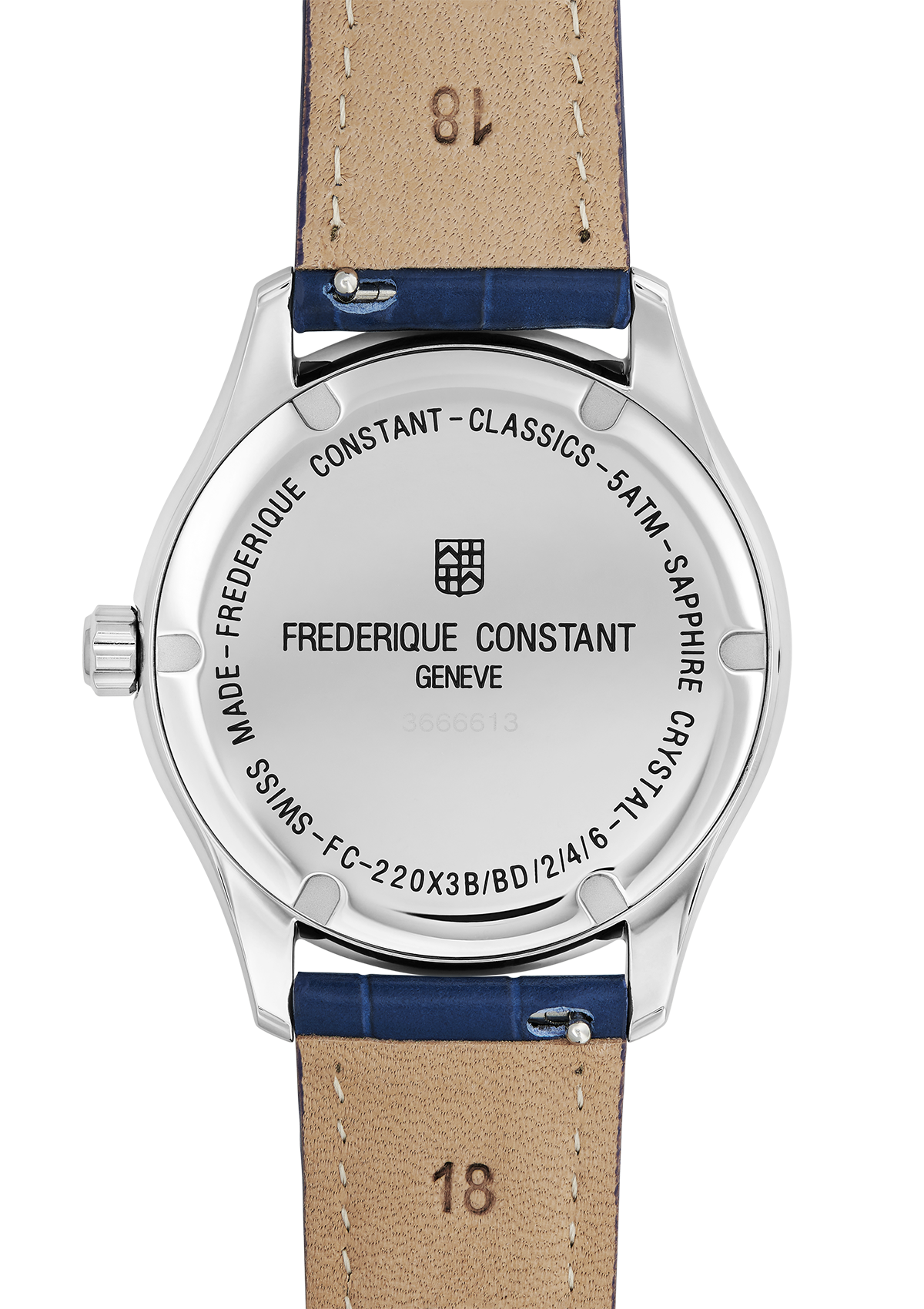 • Funkce a popis:Čas, datum, strojek swiss quartz Frederique Constant FC-220 (1 kamenový uložení) - přesnost chodu 0 - 0,5 vteřiny denně, výdrž baterie až 45 měsíců