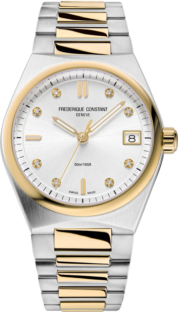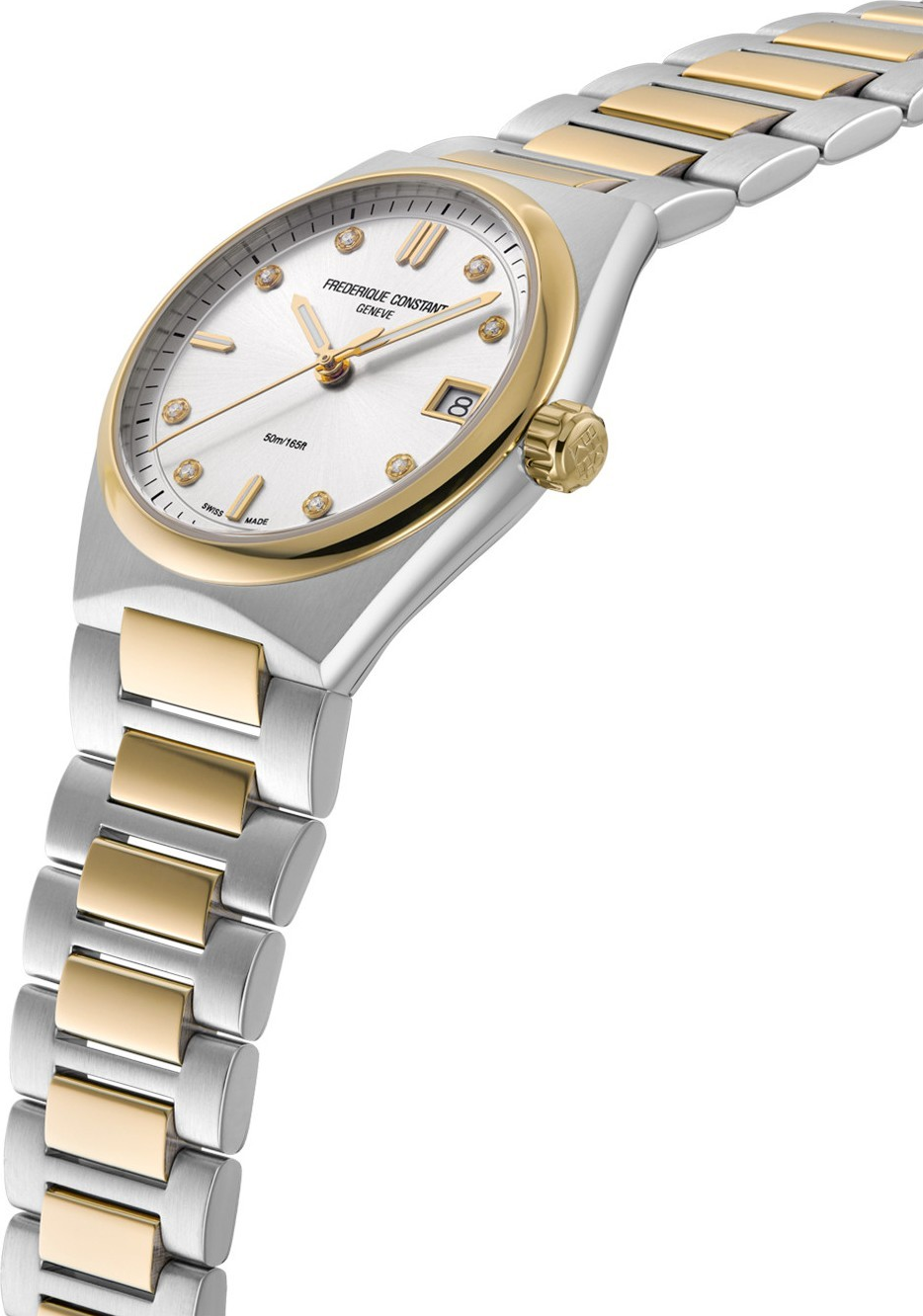 Frederique Constant Highlife Ladies Quartz FC-240VD2NH3B jsou dámské švýcarské hodinky, které zaujmou elegantním bicolor vzhledem, diamantovými indexy a velmi pohodlným quartzovým provozem. Kolekce Highlife zde nabízí spojení moderního integrovaného designu a ženského luxusu v teplejších tónech, které se výborně hodí pro každodenní nošení i slavnostnější příležitosti. Stříbrný číselník se slunečním brusem v kombinaci se zlatými akcenty působí svěže, jemně a velmi reprezentativně. ...
