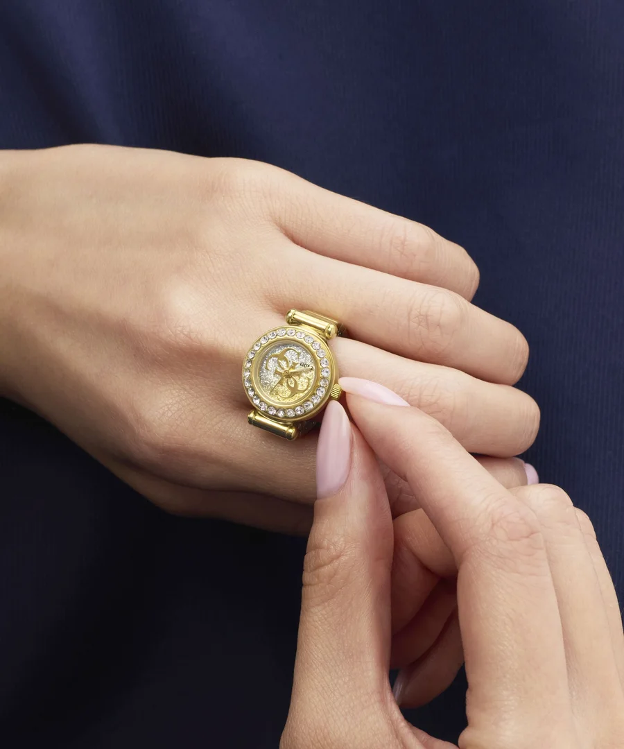 Guess Anna GW1022L2 - Gold Tone jsou dámské hodinky Guess navržené jako šperk - prsten, který zaujme na první pohled. Značka staví na elegantní siluetě a třpytu - luneta je osazená krystaly a celek působí luxusně, ale stále nositelně pro každý den. Příjemným bonusem je důraz na materiál - pouzdro i náramek jsou vyrobené z recyklované oceli, takže styl jde ruku v ruce s modernějším přístupem k výrobě.
