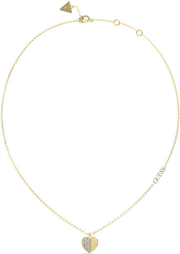 Náhrdelník z pozlacené nerezové oceli má tenký řetízek s Guess logem a přívěšek se zirkonovými krystaly. Gravírované logo Guess na přívěšku. Zapínání na karabinku.