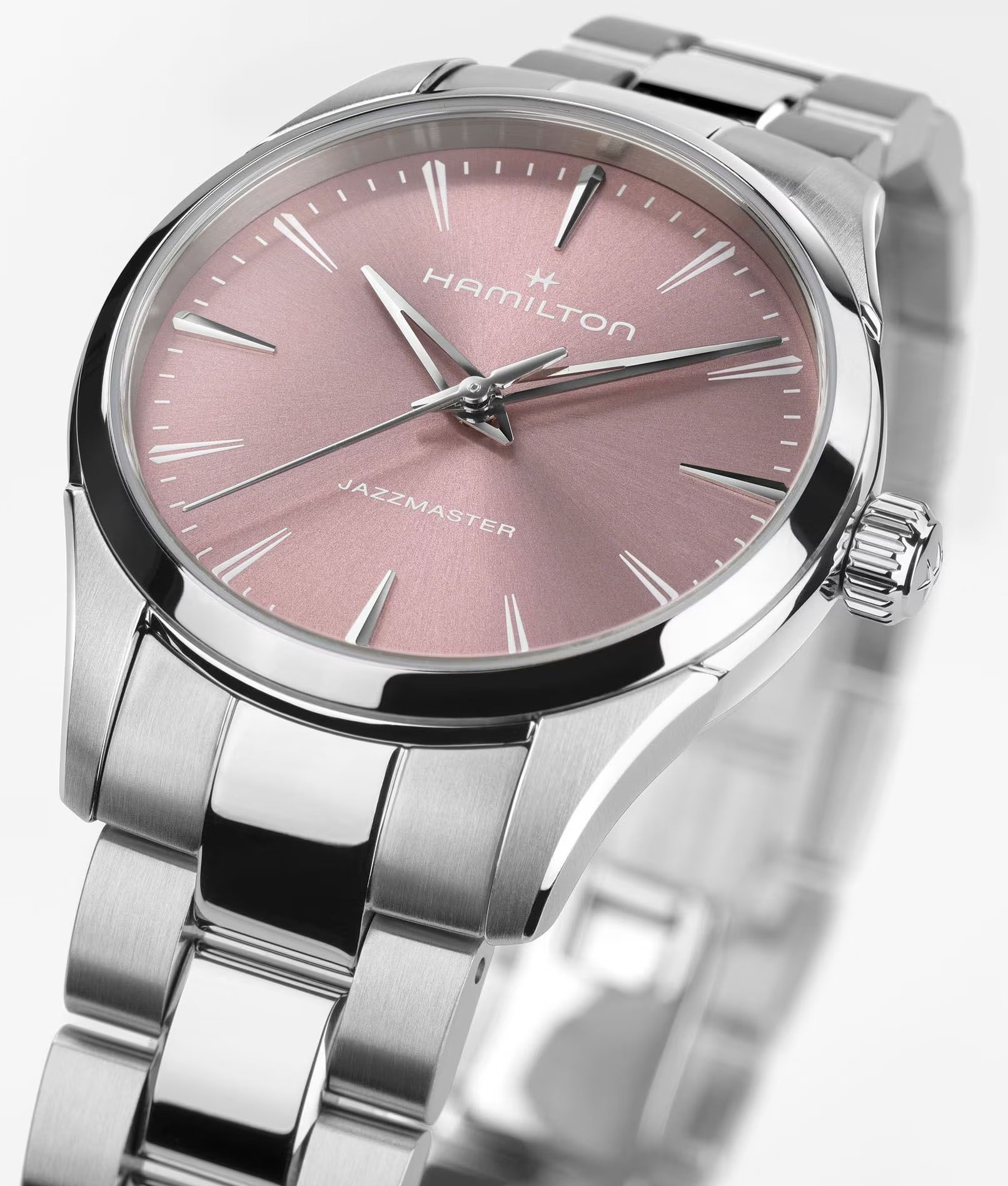 Hamilton Jazzmaster Quartz 32 mm H32301171 jsou elegantní dámské švýcarské hodinky, které staví na jemných proporcích, tenkém pouzdře a velmi svěžím barevném akcentu v podobě růžového číselníku. Uvnitř pracuje quartzový strojek F05.105, který zajišťuje přesný a bezstarostný provoz. Model zobrazuje hodiny, minuty a centrální vteřinu, takže design zůstává čistý, vyvážený a velmi přehledný. Kolekce Jazzmaster je spojena s městskou elegancí a tato dámská reference tuto ...