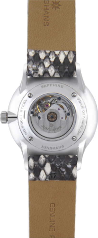 • Funkce a popis:Čas, datum, strojek s automatickým nátahem Junghans J840.1 (25 kamenů) - rezerva chodu 38 hodin, polokmity setrvačky 28.800/h = diference 2 - 4 vteřiny denně, automatický nátah (pohybem ruky) + ruční nátah (hodinky lze natáhnout i mechanicky - ručně)