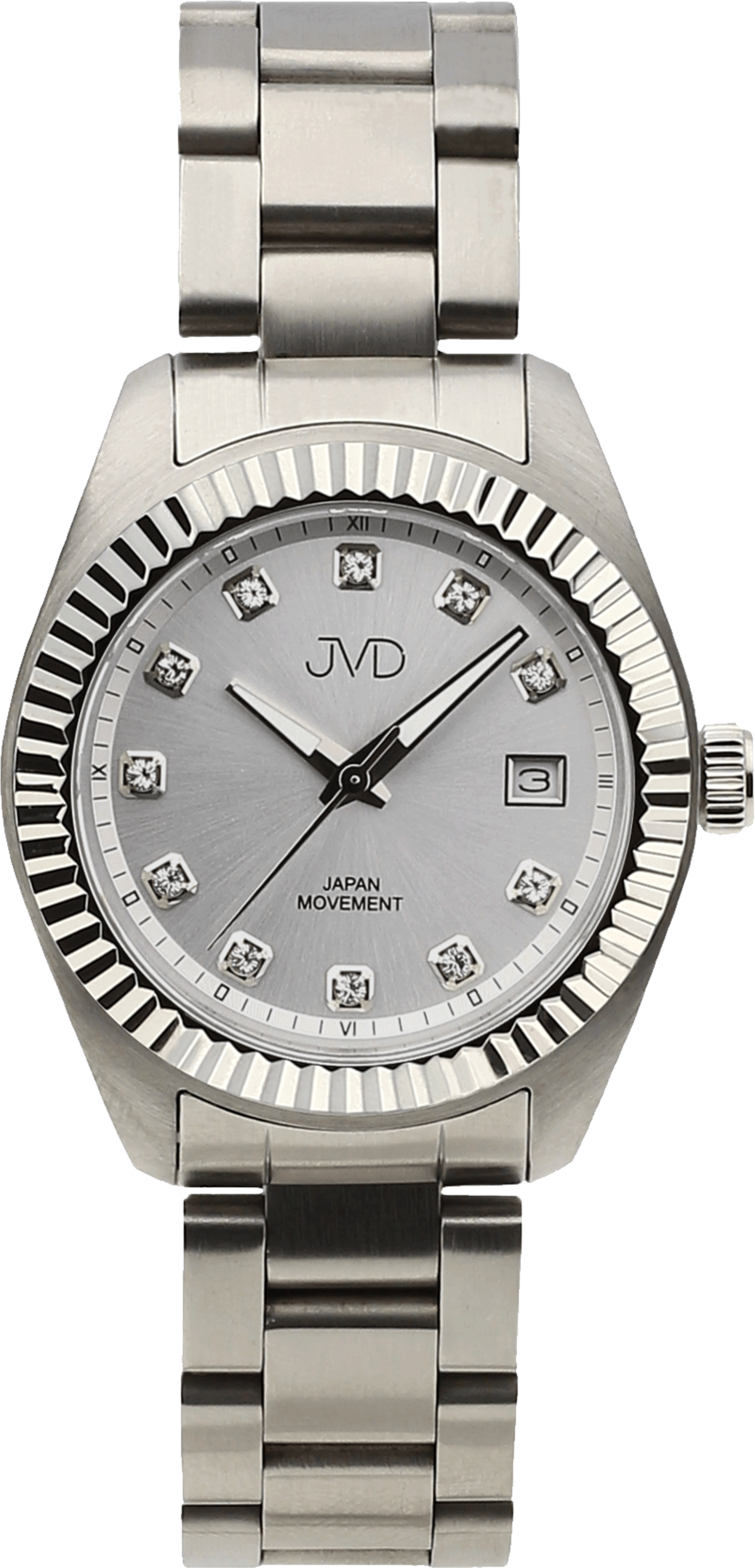 • Funkce a popis:Čas, datum, svítící ručky, číselník zdobí zirkony, quartzový strojek Miyota 2115